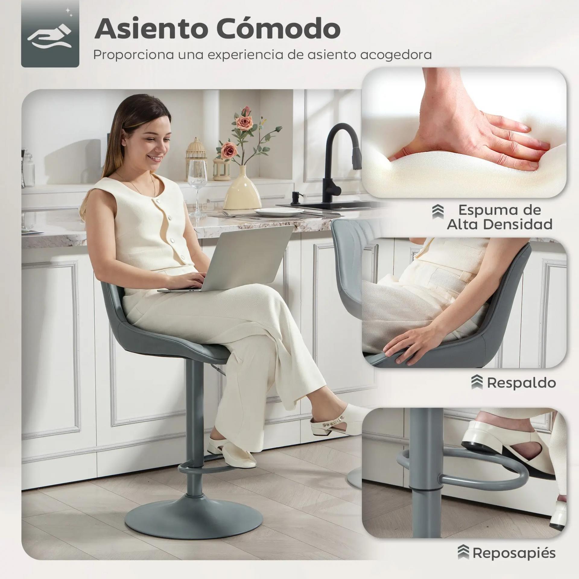 - - ALTURA AJUSTABLE Y GIRO DE 360°: Ajusta fácilmente la altura de los taburetes altos entre 60 y 81 cm para adaptarse a barras o escritorios, y disfruta del giro completo de 360° para mayor comodidad al conversar o comer