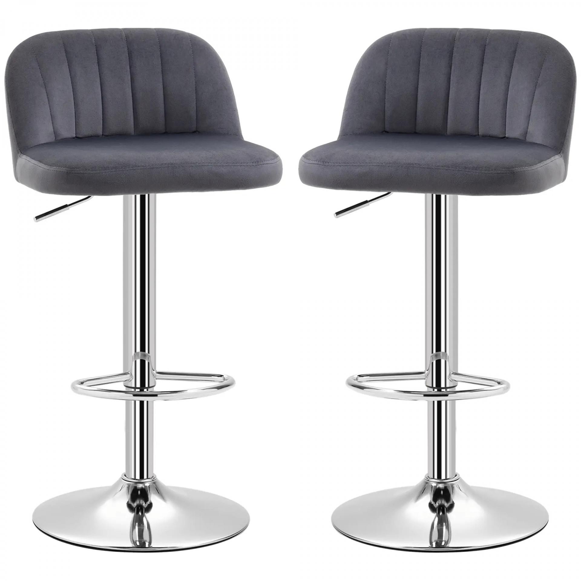 - - MÁXIMO CONFORT: El asiento acolchado está tapizado en un elegante tejido aterciopelado, suave y resistente, que asegura confort durante su uso. Además, estos taburetes de bar incorporan reposapiés de acero, ideal para mantener siempre una postura relajada