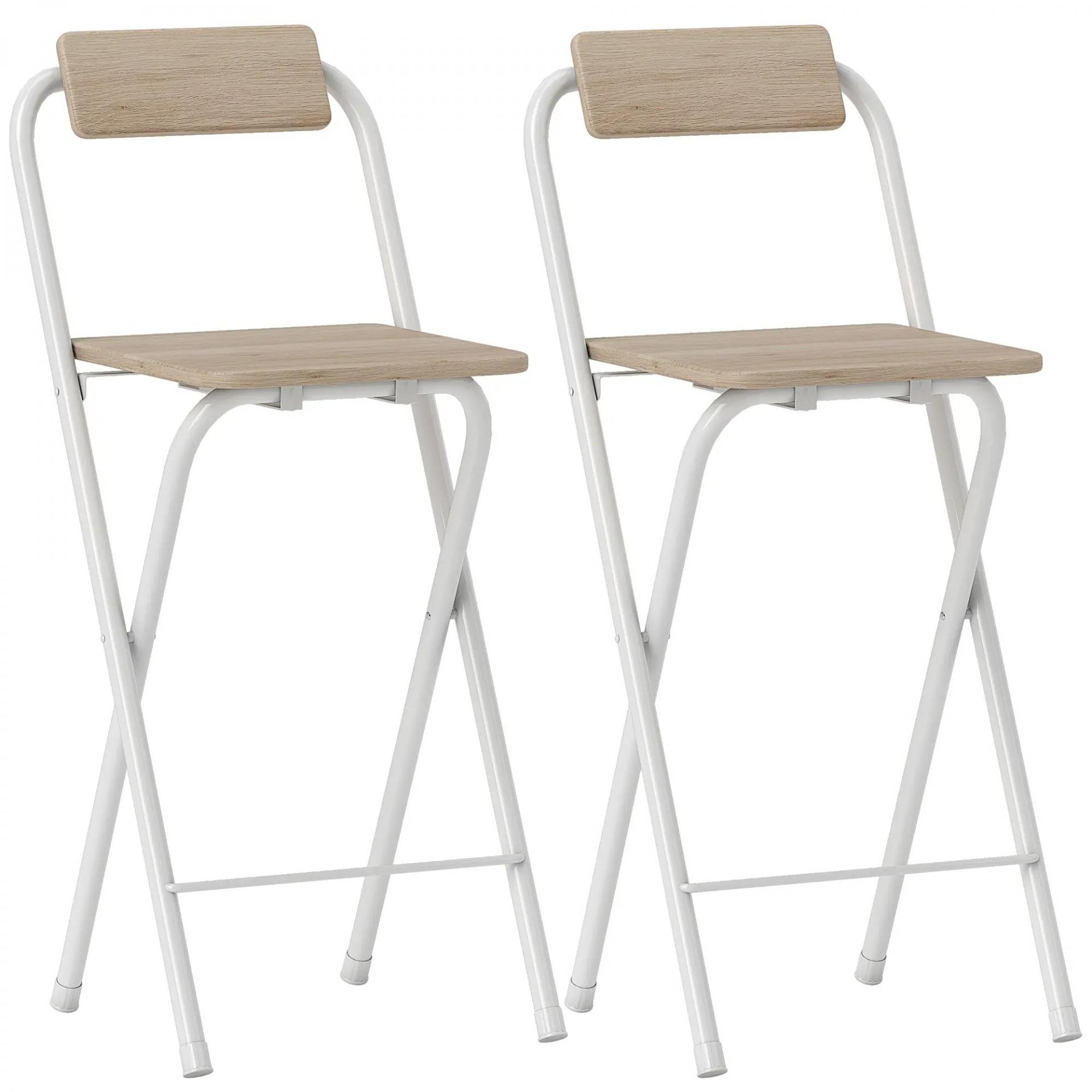 Juego de 2 Taburetes de Bar Plegables con Respaldo Reposapiés y Marco de Acero para Comedor Mostrador Natural
