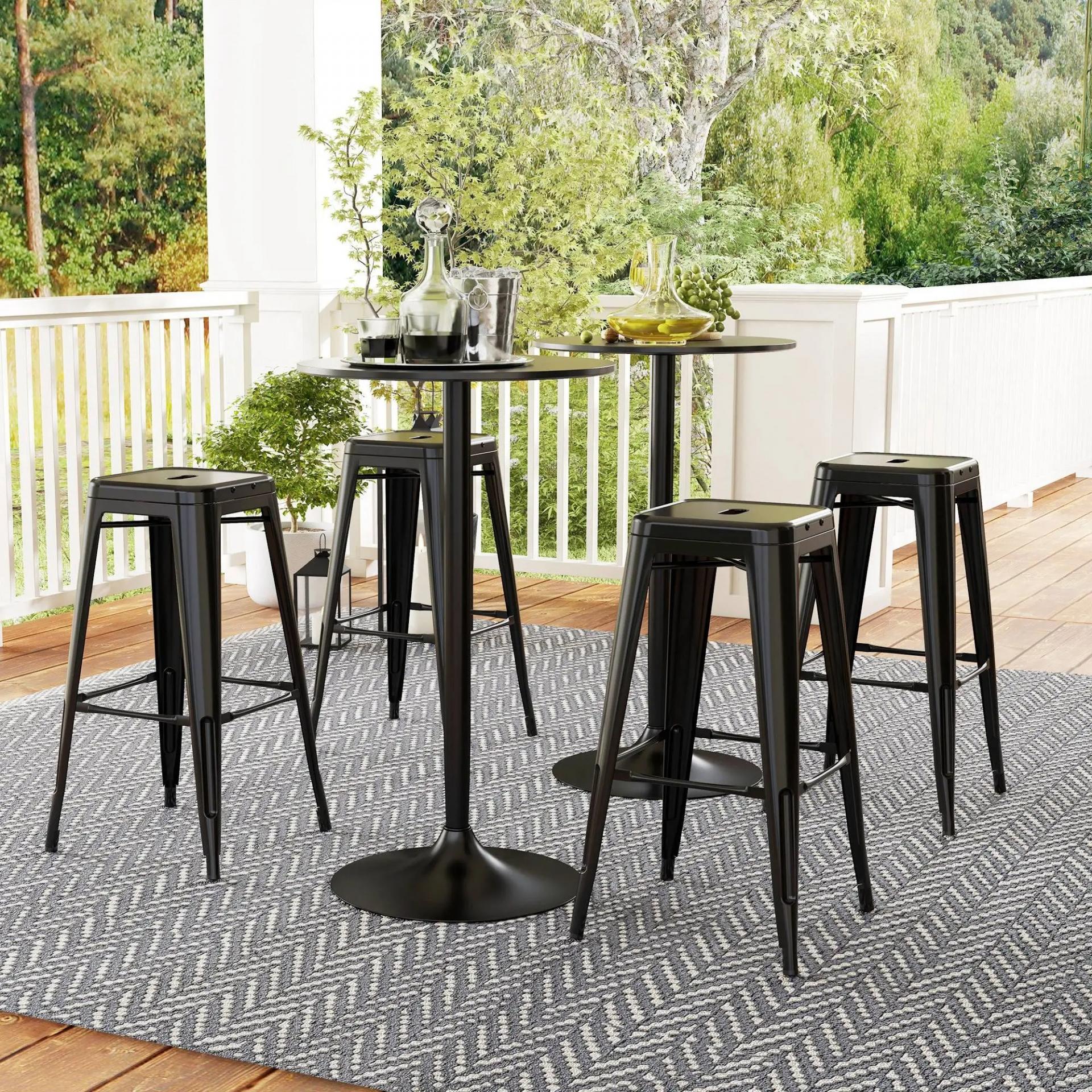 Conjunto de 4 Taburetes de Bar Estilo Industrial Apilables y con Reposapiés Aptos para Interiores y Exteriores 43x43x76 cm Carga Hasta 120kg Negro
