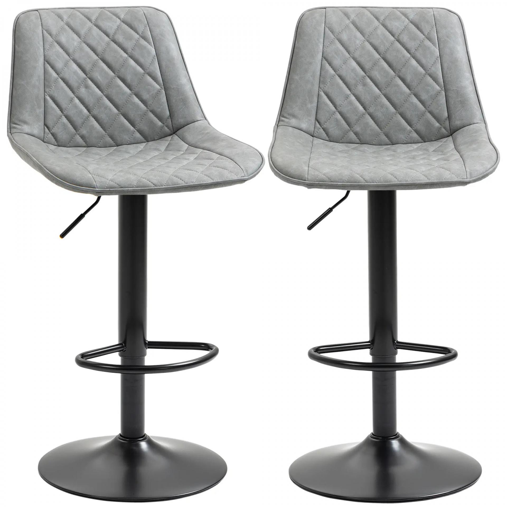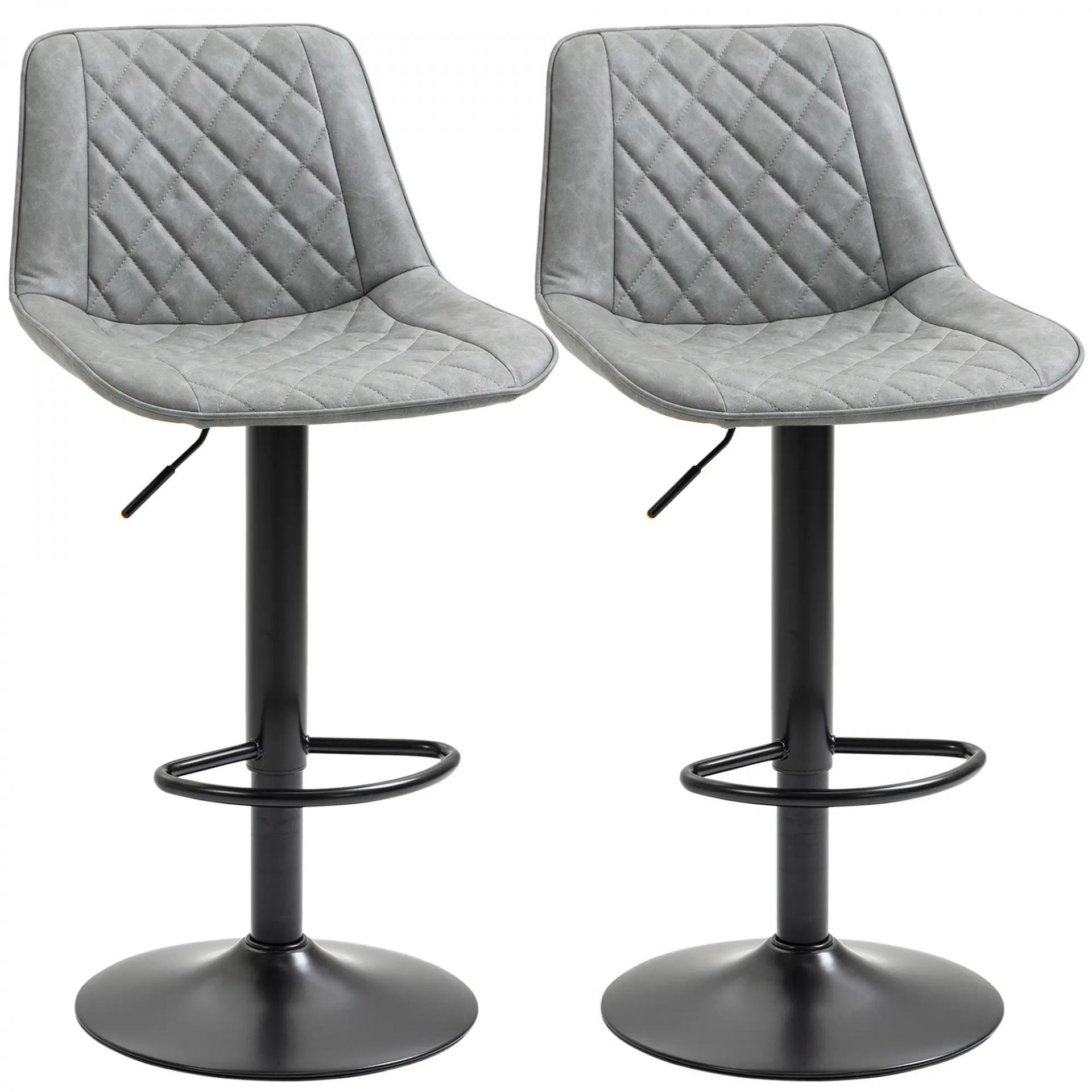 Juego de 2 Taburetes de Bar Giratorios Altura Ajustable 86-106 cm Tapizada en Cuero Sintético Respaldo y Reposapiés Gris