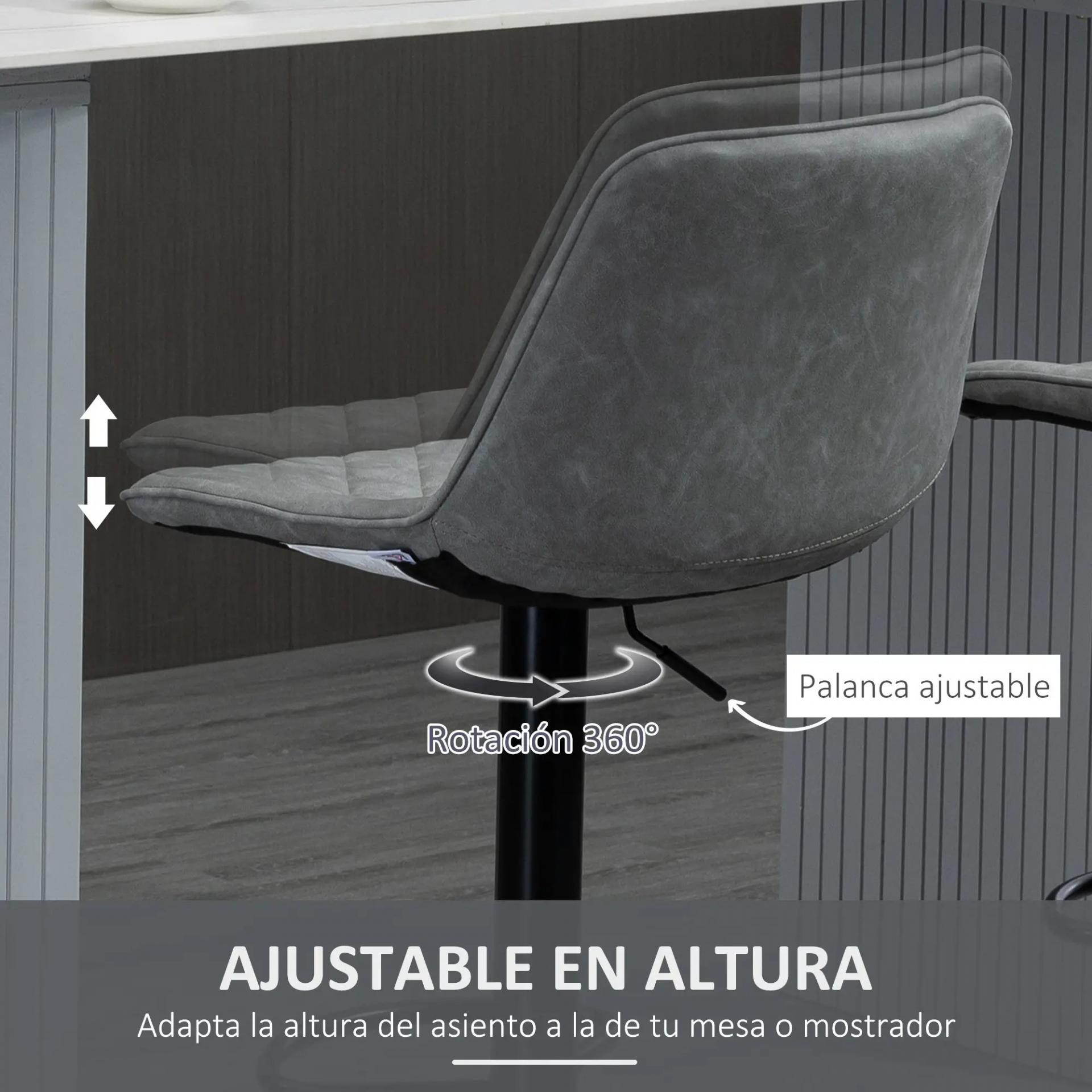- - ASIENTO GIRATORIO CON ALTURA AJUSTABLE: Puedes regular la altura entre 59-79 cm para adaptarlo a tu mesa o barra. Gira 360°, incluye reposapiés y cuenta con un elevador de gas certificado por TÜV que aporta estabilidad y evita tambaleos