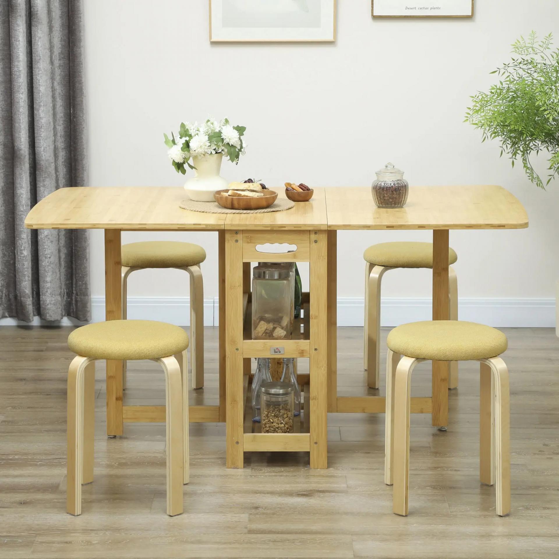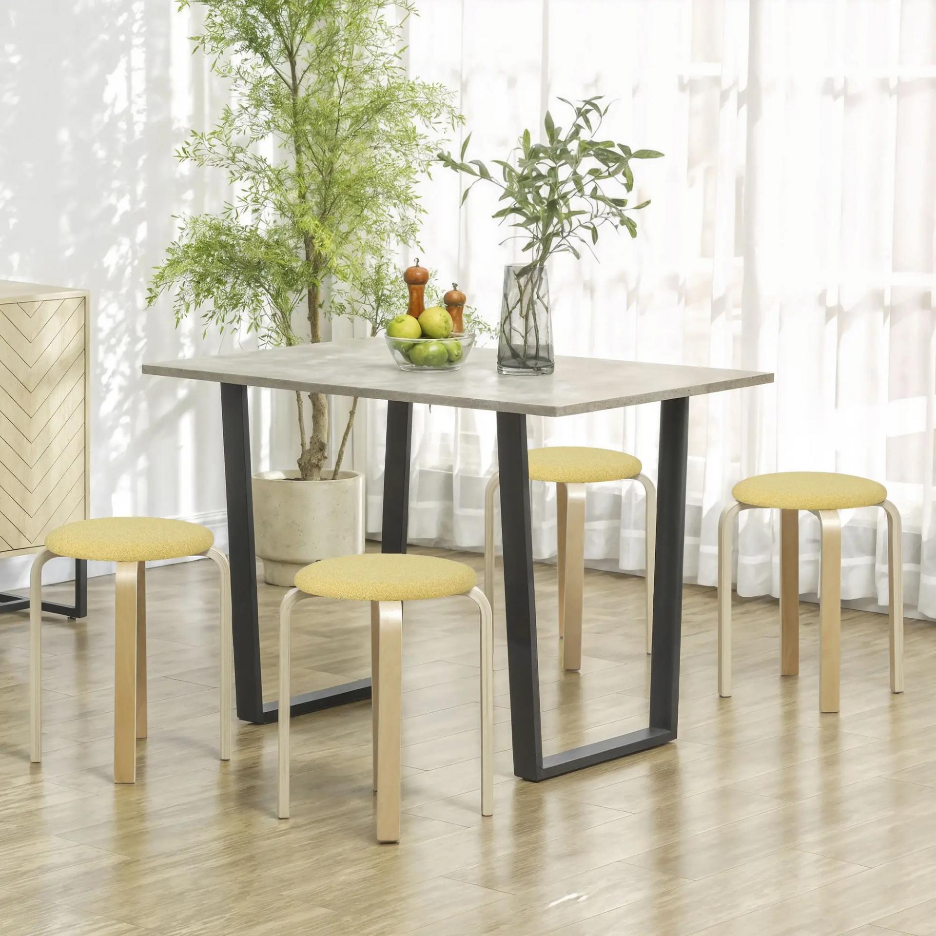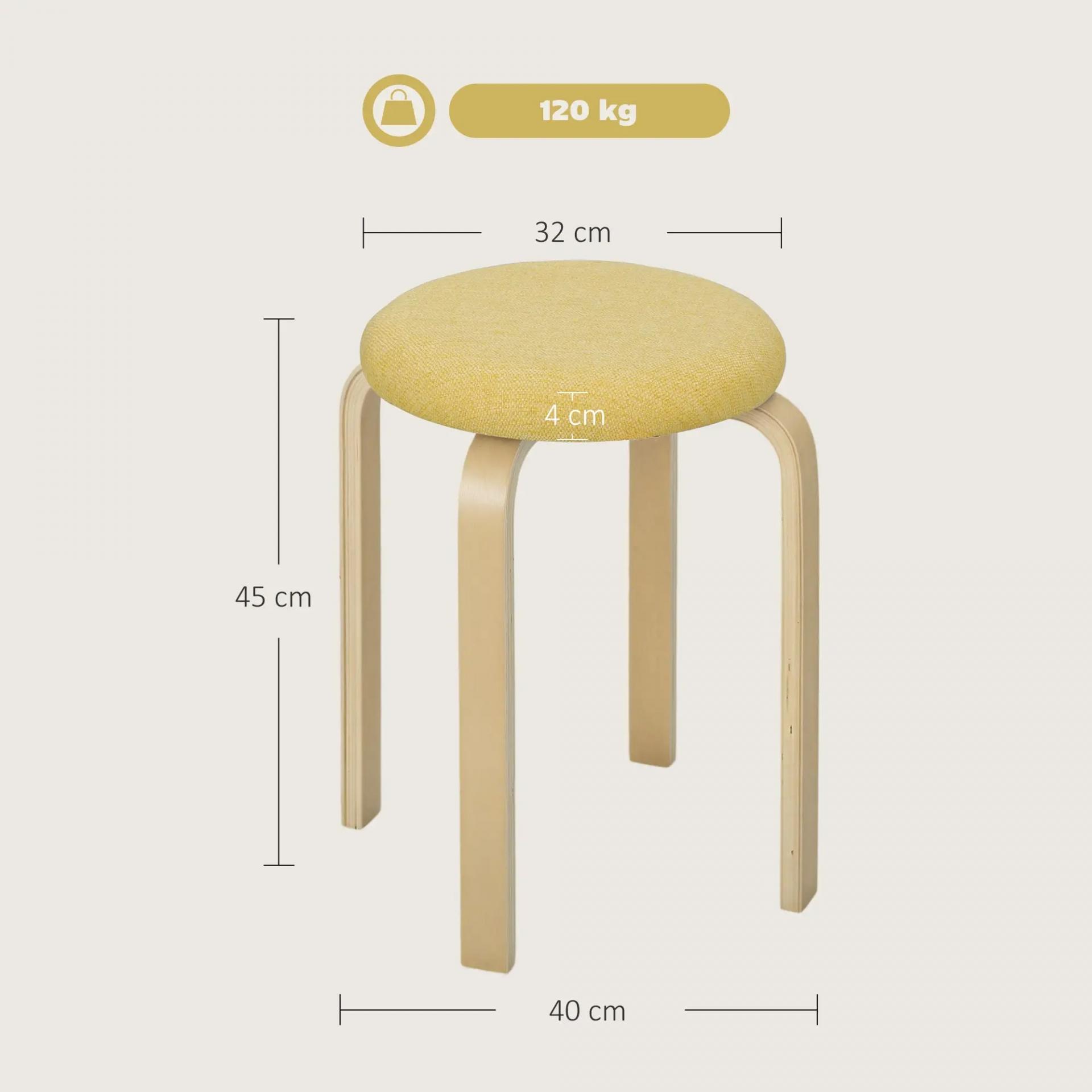 Juego de 4 Taburetes Redondos de Madera Apilables con Asiento Acolchado para Cocina Comedor Dormitorio Amarillo