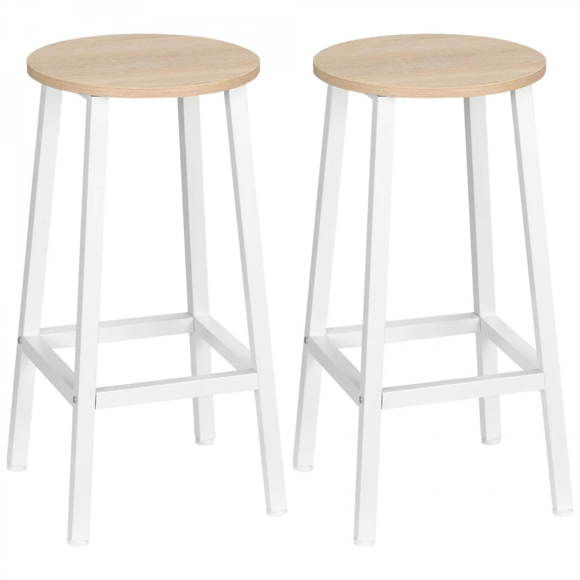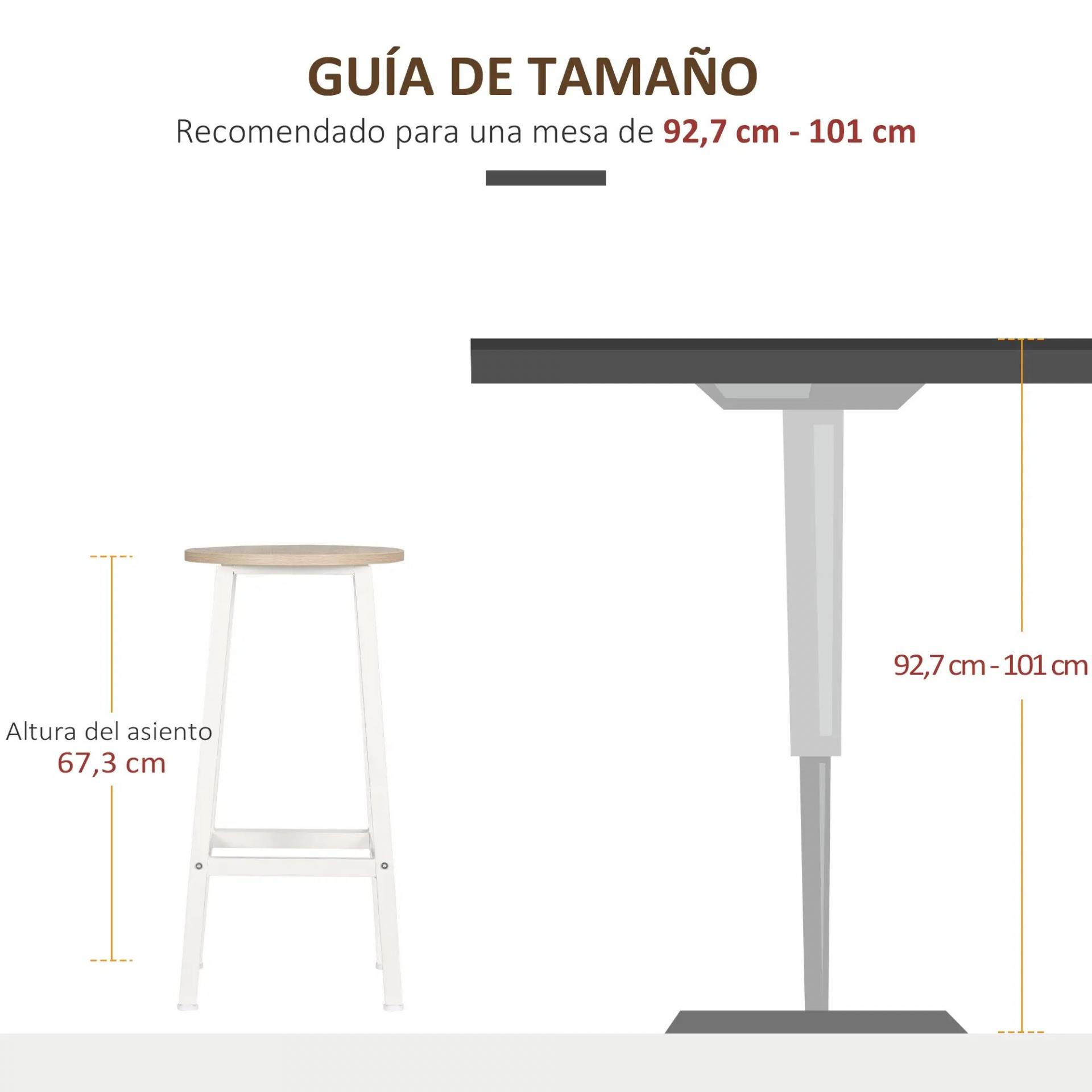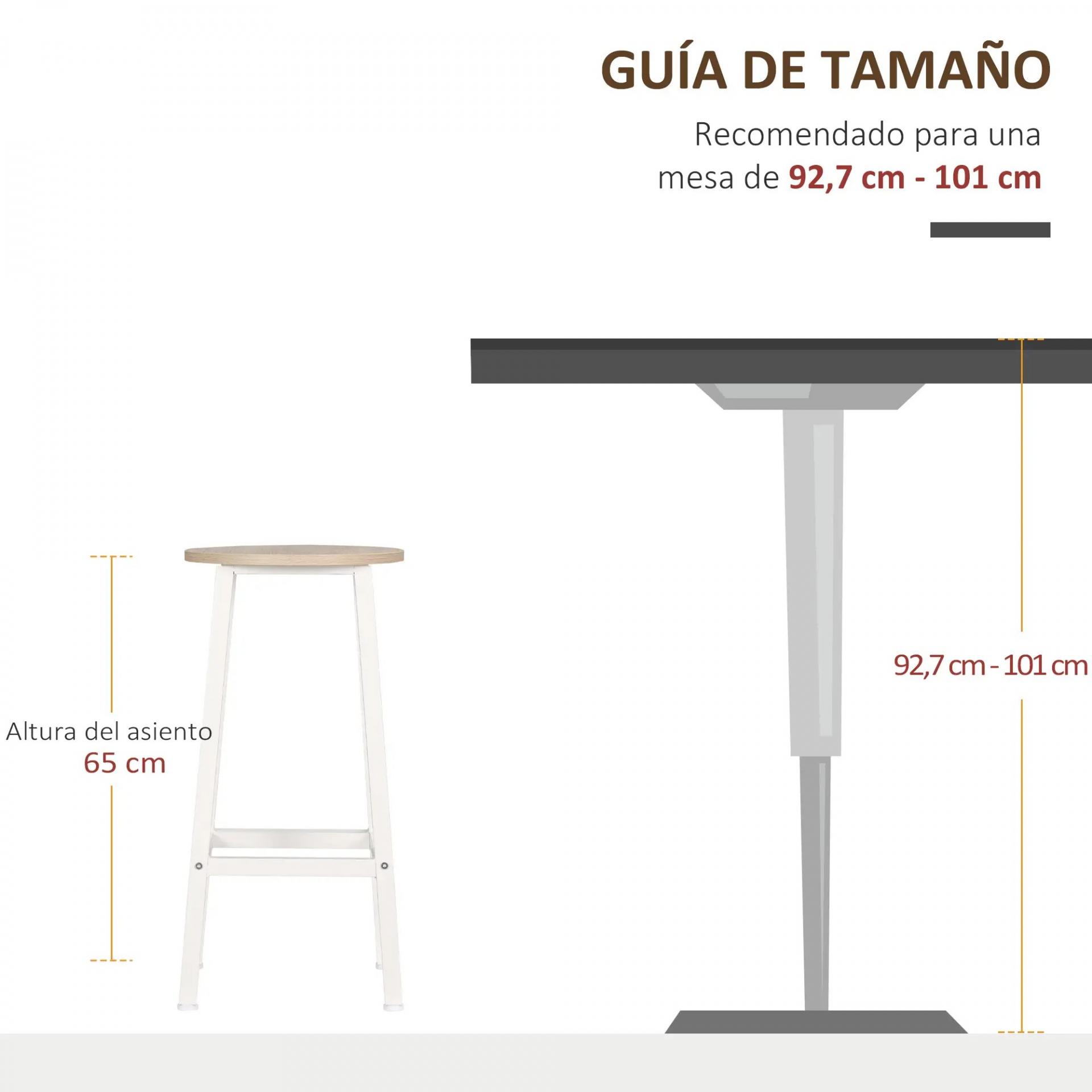 Juego de 2 Taburetes Altos de Cocina con Asiento de Melamina y Patas de Acero 32,5x32,5x65 cm Natural y Blanco