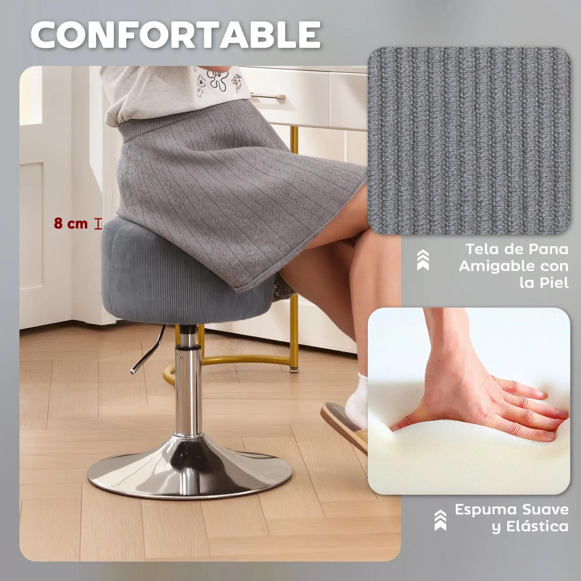 - EXCELENTE COMODIDAD: Este taburete de bar tiene una superficie de pana suave, resistente y agradable al tacto, con un asiento acolchado de espuma de 17 cm que proporciona comodidad incluso en usos prolongados