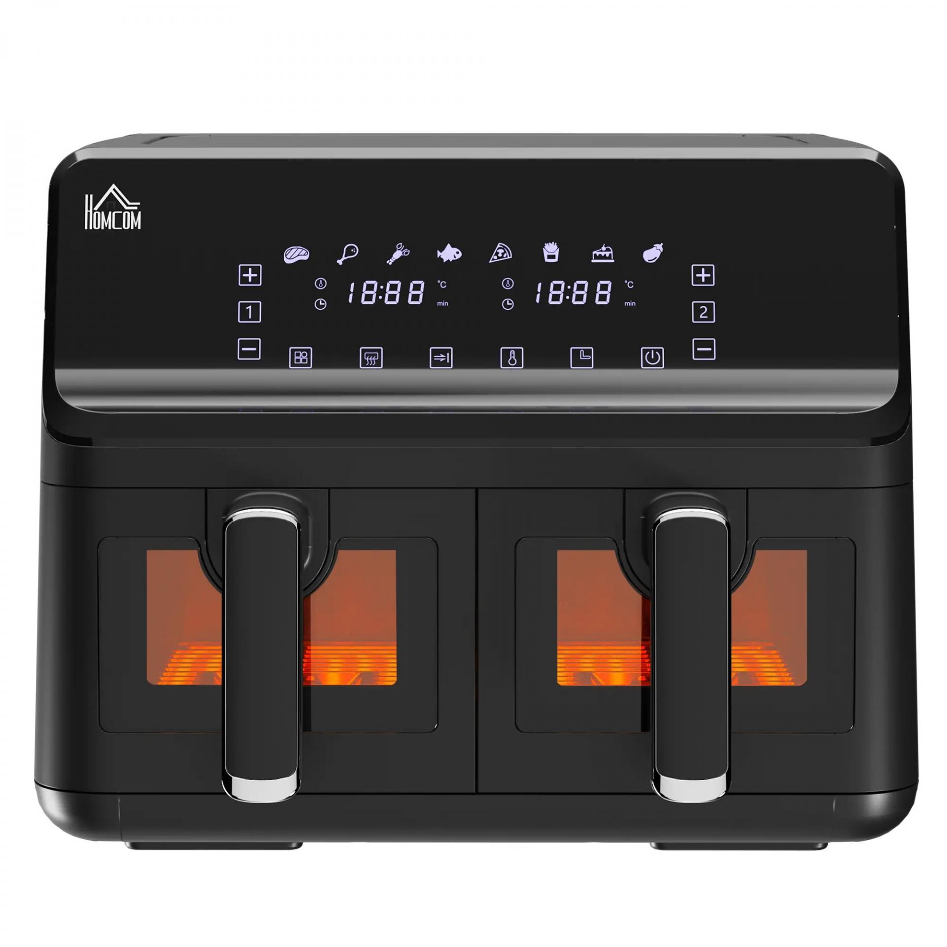 Freidora sin Aceite Doble 8L 2500W 8 Programas Pantalla LED Táctil Temperatura Ajustable 80-200℃ 38,5x38x30,5 cm Negro