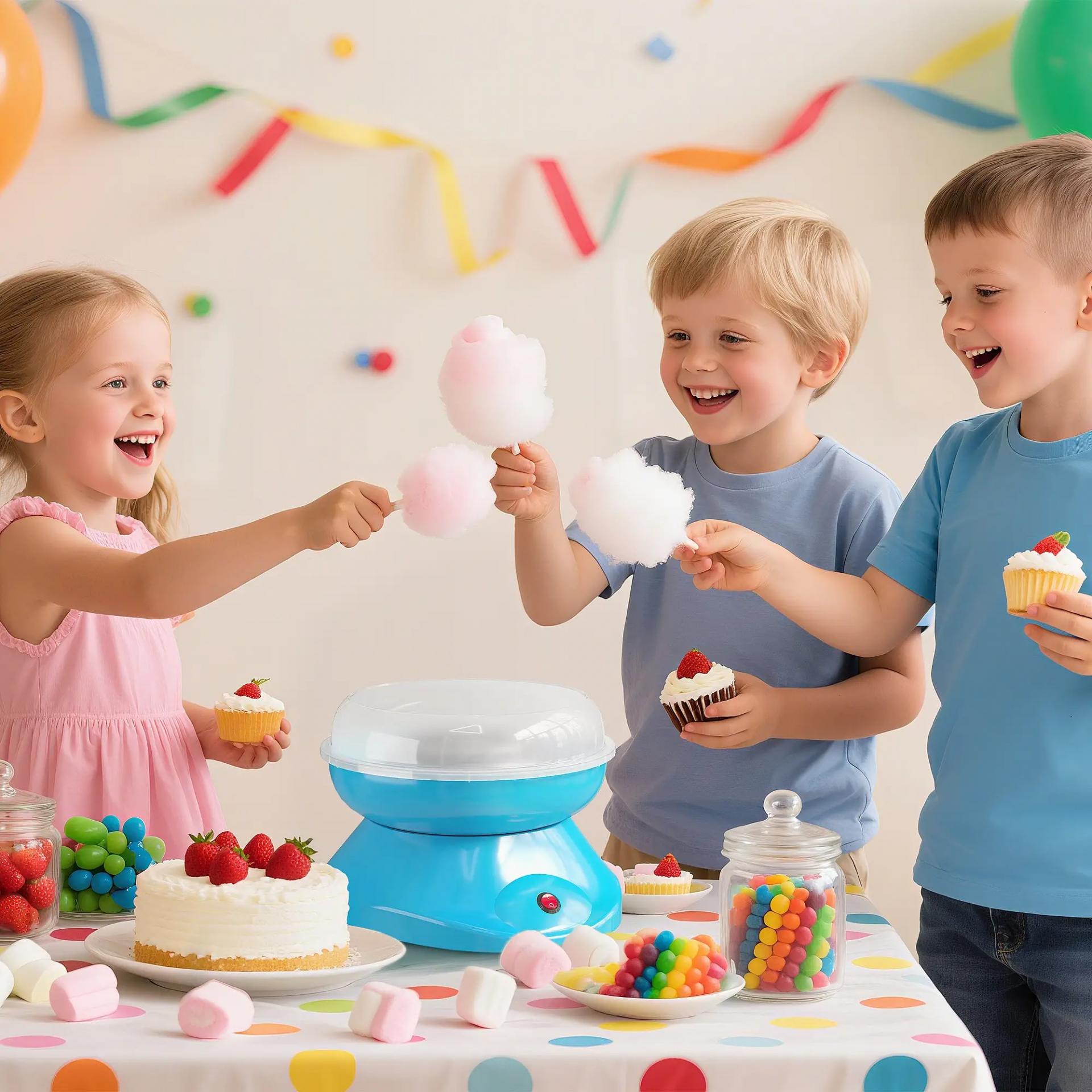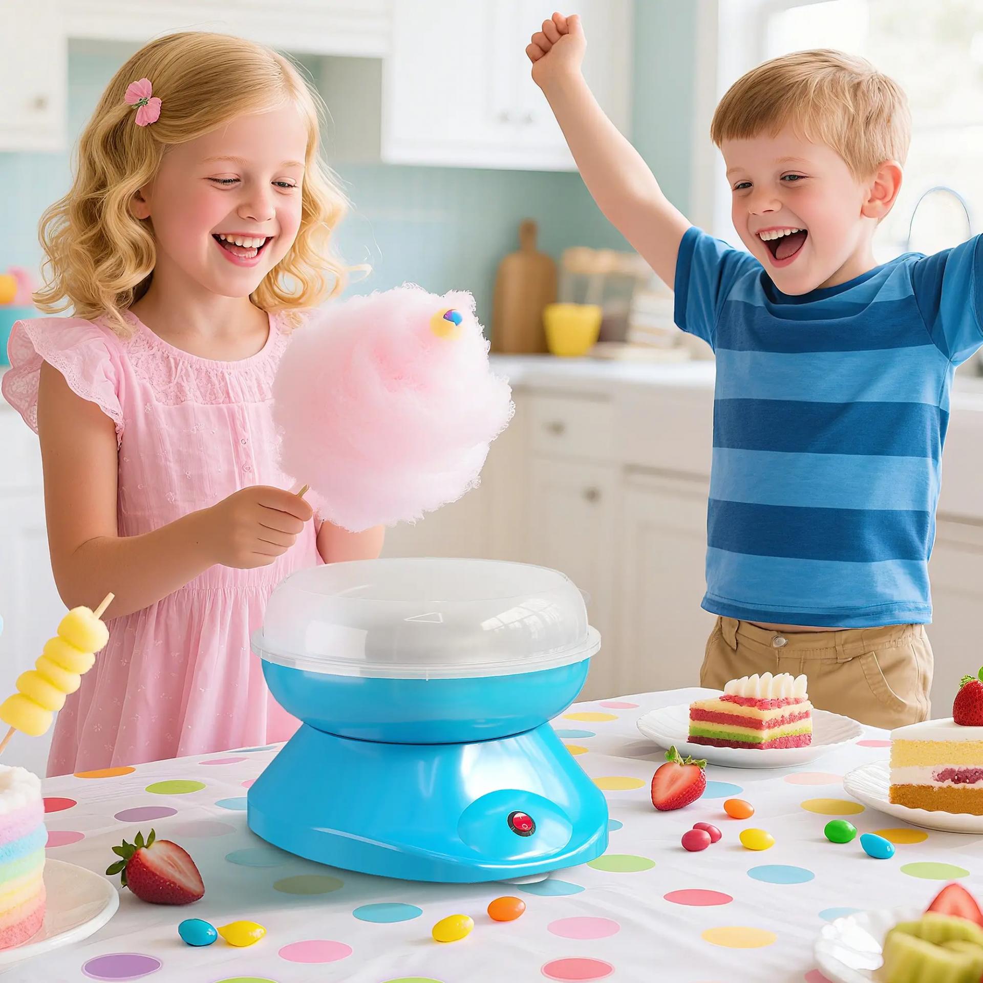 - ALTA EFICIENCIA: Con motor de 450-550 W y 2 tubos de cuarzo, esta máquina de algodón de azúcar calienta rápido y está lista en minutos. Ideal para fiestas infantiles y para endulzar cualquier ocasión especial
