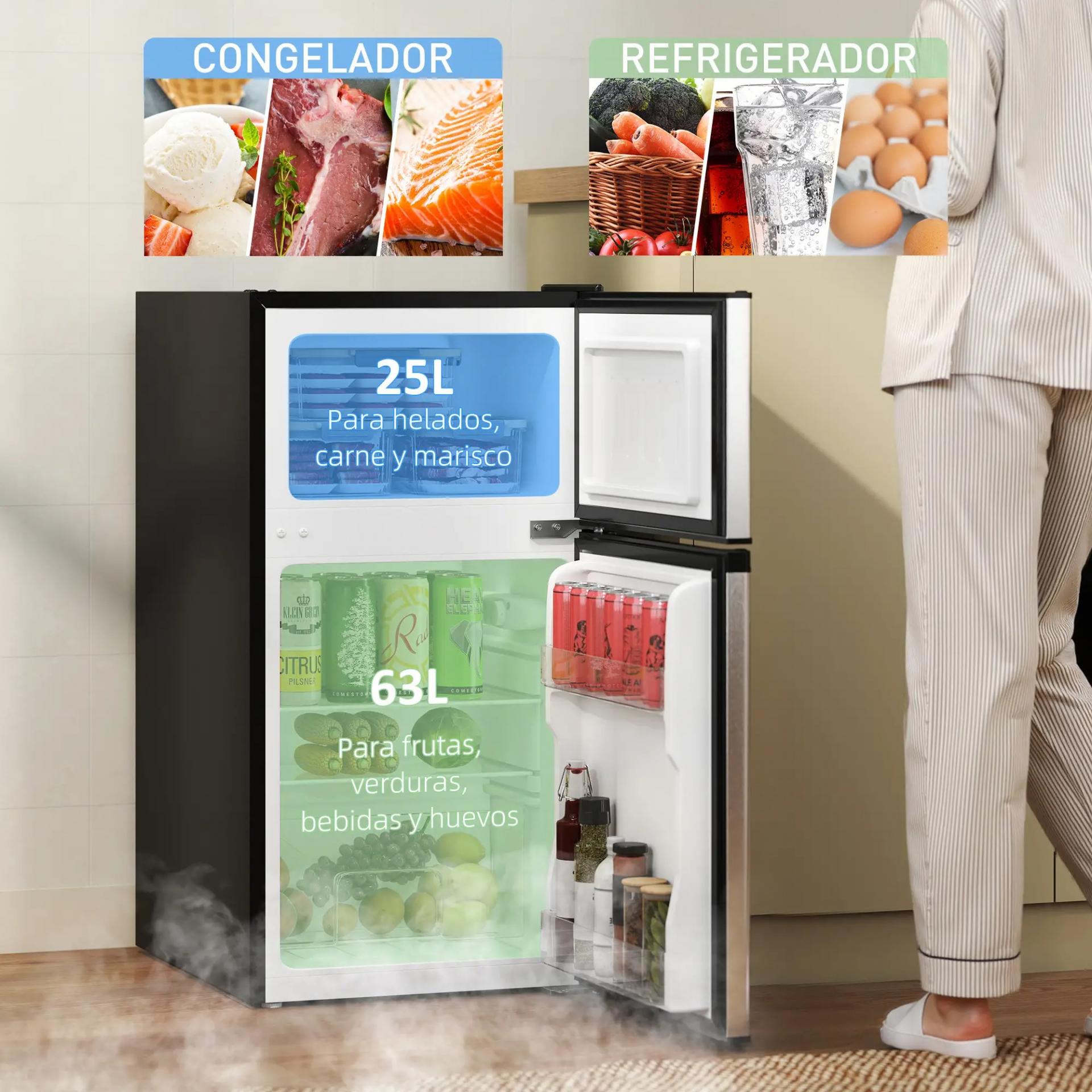 - FRIGORÍFICO Y CONGELADOR SEPARADOS: Este frigorífico bajo encimera de HOMCOM dispone de dos compartimentos independientes: un congelador de 25L para helados y un frigorífico de 63L para productos frescos, ideal para pisos pequeños, oficinas o estudios