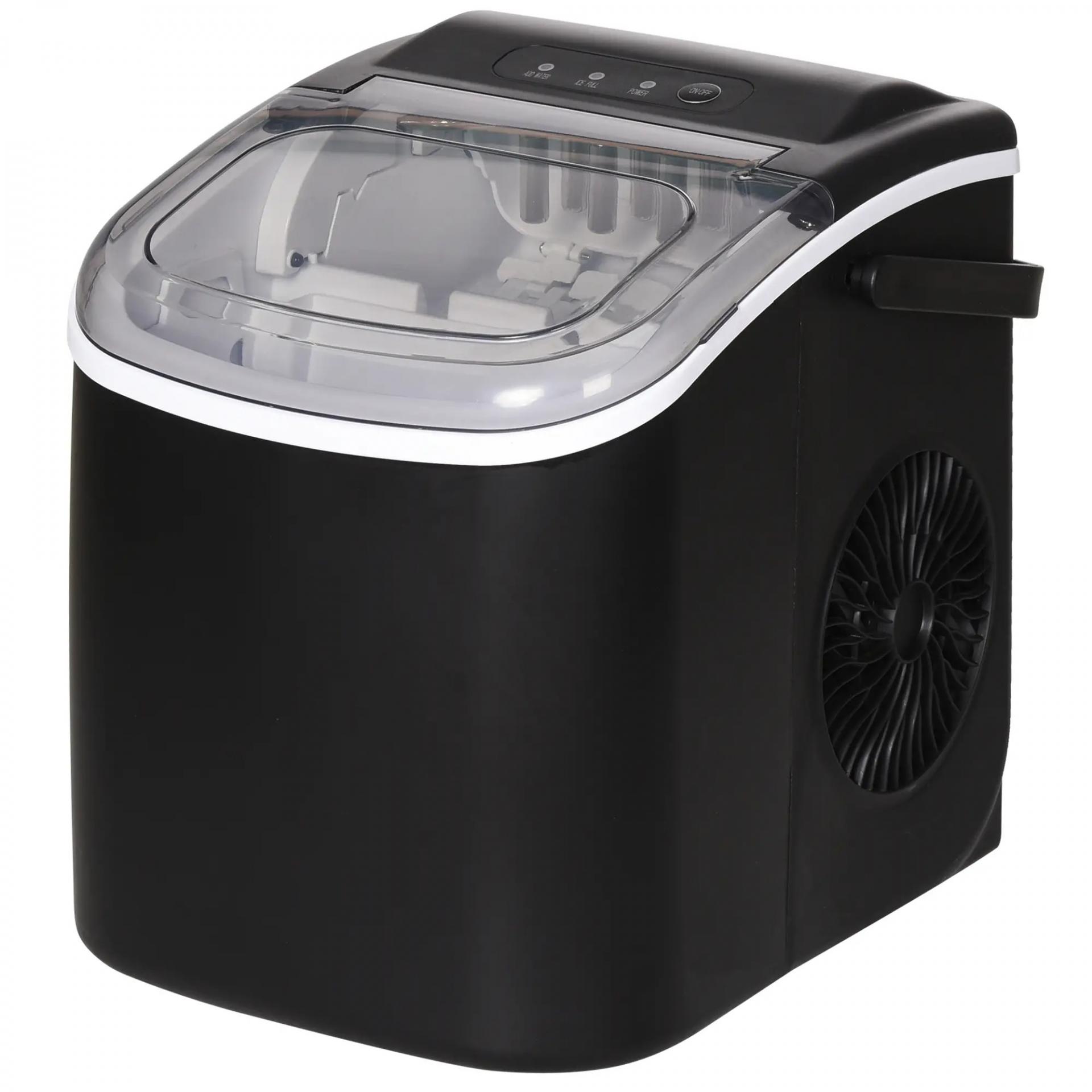 Máquina para Hacer Hielo 12 Kg en 24 Horas 9 Cubitos en 6-12 Minutos Depósito de Agua 1,3 L 22,2x29,4x29 cm Negro