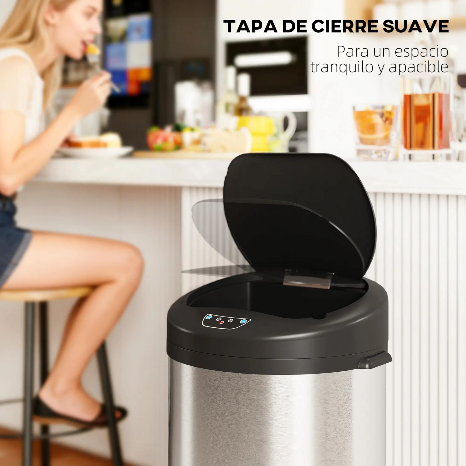 - - DETALLES FUNCIONALES Y MODERNOS: El anillo de sujeción mantiene la bolsa oculta y fija, mientras que la tapa con cierre suave evita ruidos molestos, haciendo que este cubo de basura con sensor se integre discretamente en cualquier estancia del hogar