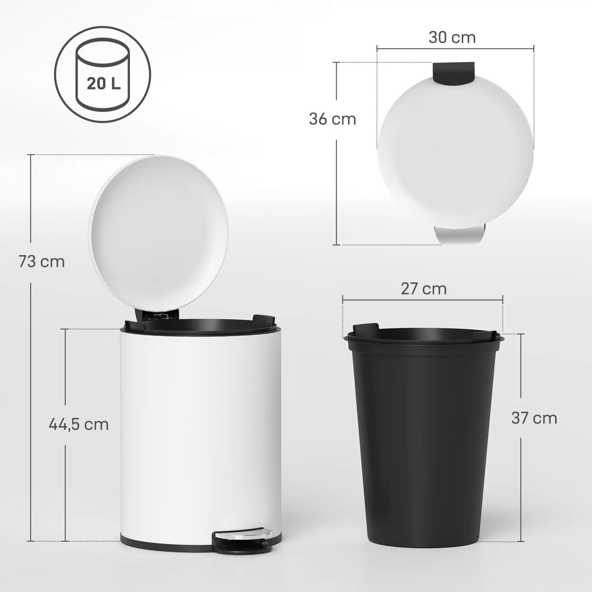 - 20L DE CAPACIDAD: Este cubo de basura de cocina es ideal para espacios pequeños, encajando perfectamente en esquinas o junto a la pared. Compacto y eficaz, permite una gestión práctica de los residuos en cocinas, estudios u oficinas