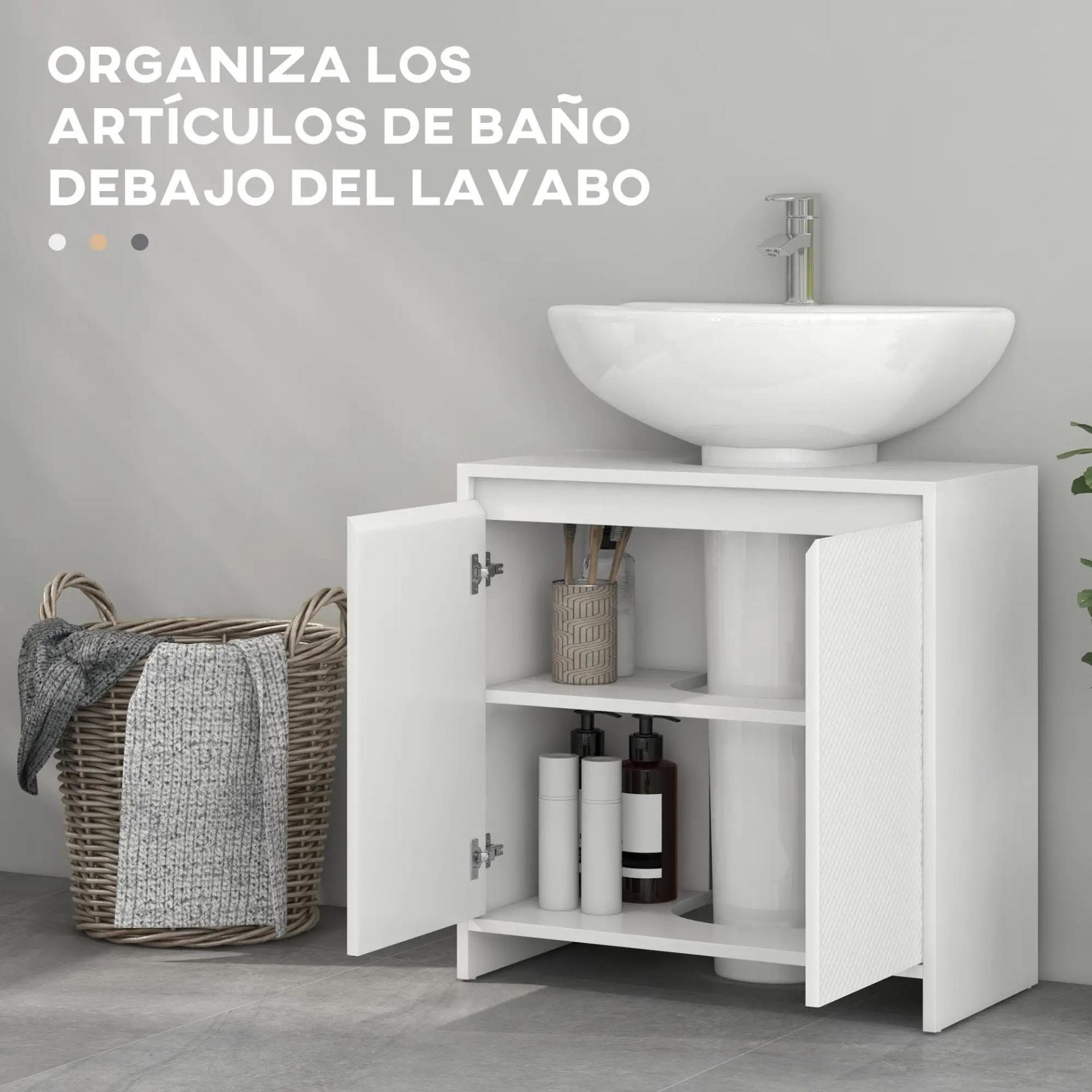 Mueble para Debajo del Lavabo Moderno con Estante Mueble Lavabo con Pie Anti-vuelco Carga 40 kg 60x30x60 cm Blanco