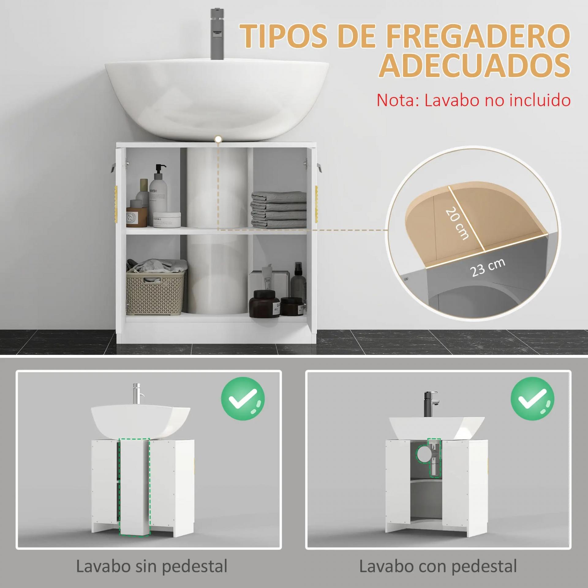 - AHORRO DE ESPACIO: Este armario se adapta debajo del lavabo, ofreciendo almacenamiento adicional. Incluye un recorte en U de 23x20 cm para los tubos. Para proporcionar la compatibilidad del producto, mide antes de comprar para asegurar la compatibilidad