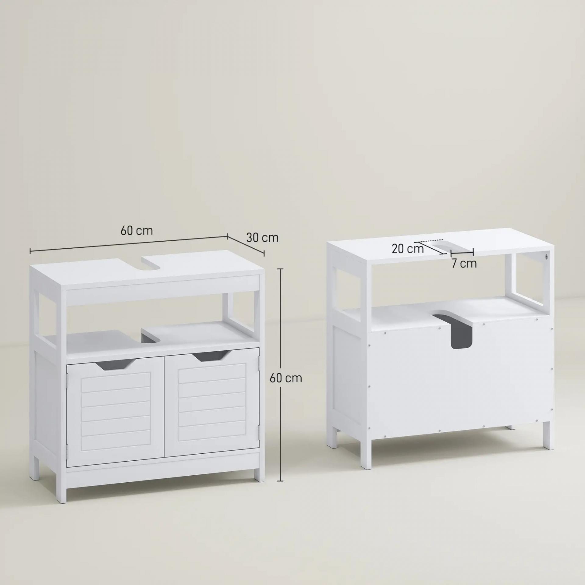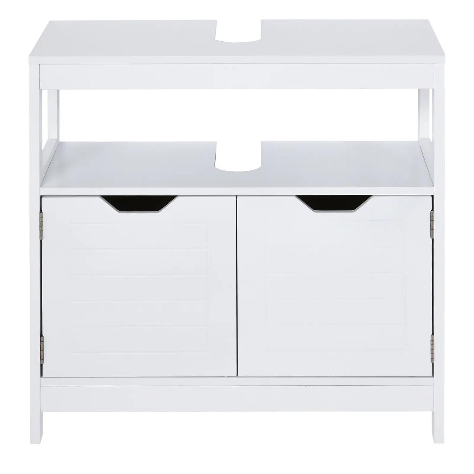 Armario para Debajo de Lavabo Gabinete de Baño con Estante 2 Puerta de Almacenamiento Dispositivo Antivuelco Resistente a la Humedad 60x30x60 cm Blanco