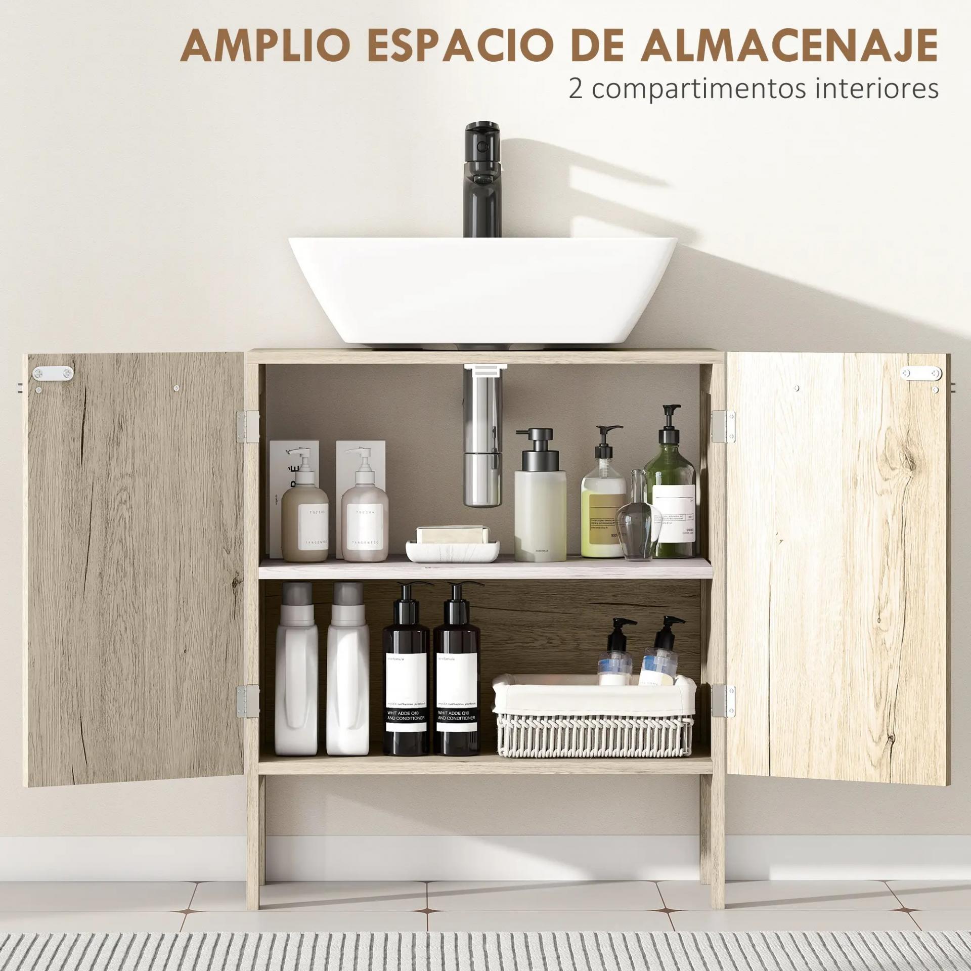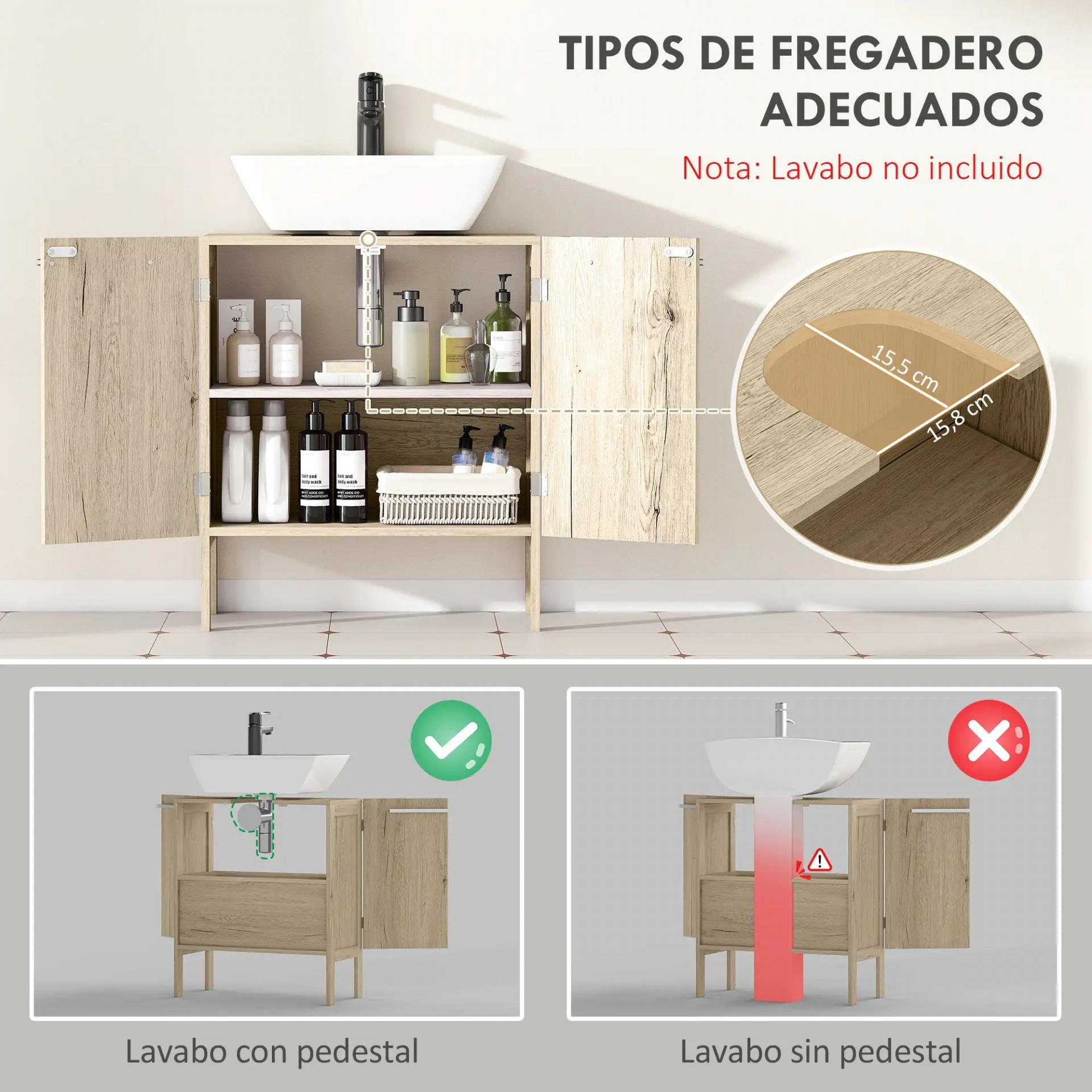 - APROVECHAMIENTO Y AHORRO DE ESPACIO: Encaja debajo del lavabo del baño, aportando un lugar extra de almacenamiento. Con recorte en forma de U de 15,8x15,5 cm para el tubo. Para asegurarte de la compatibilidad del producto con tu baño, mídelo antes de comprar