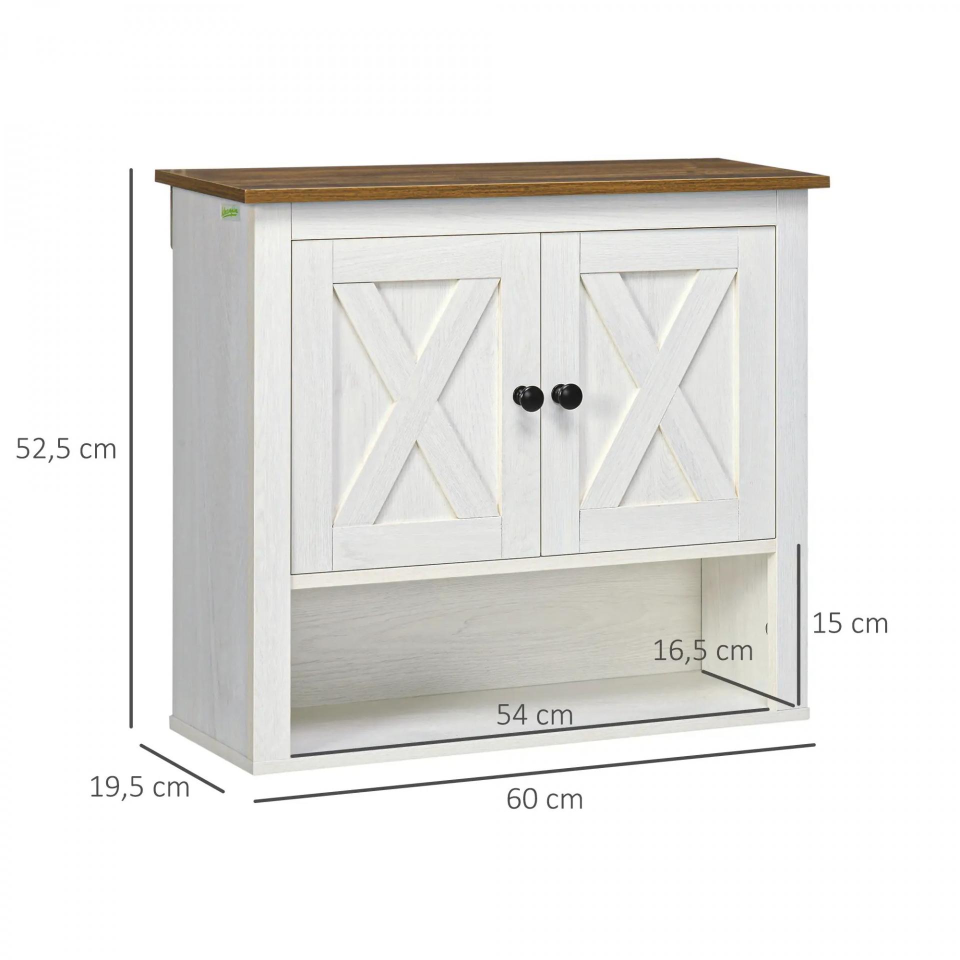Armario de Pared para Baño Mueble de Baño Colgar con 2 Puertas y Estantes de Almacenamiento 60x19,5x52,5 cm Blanco