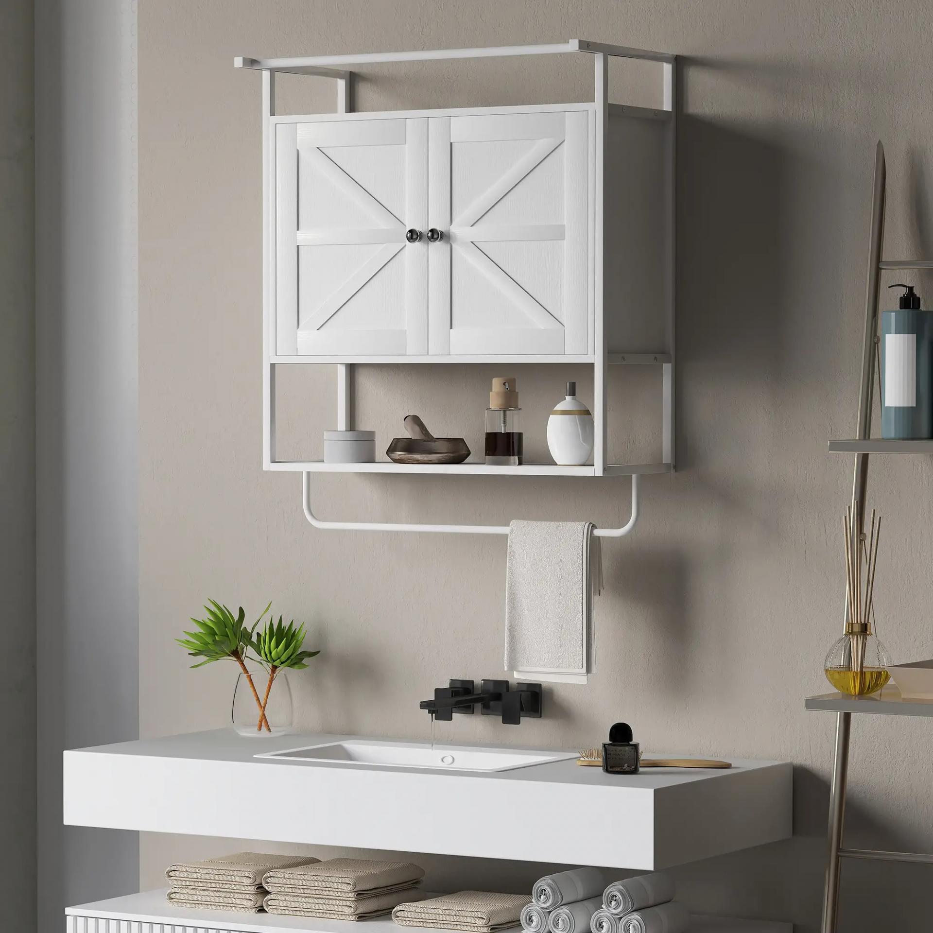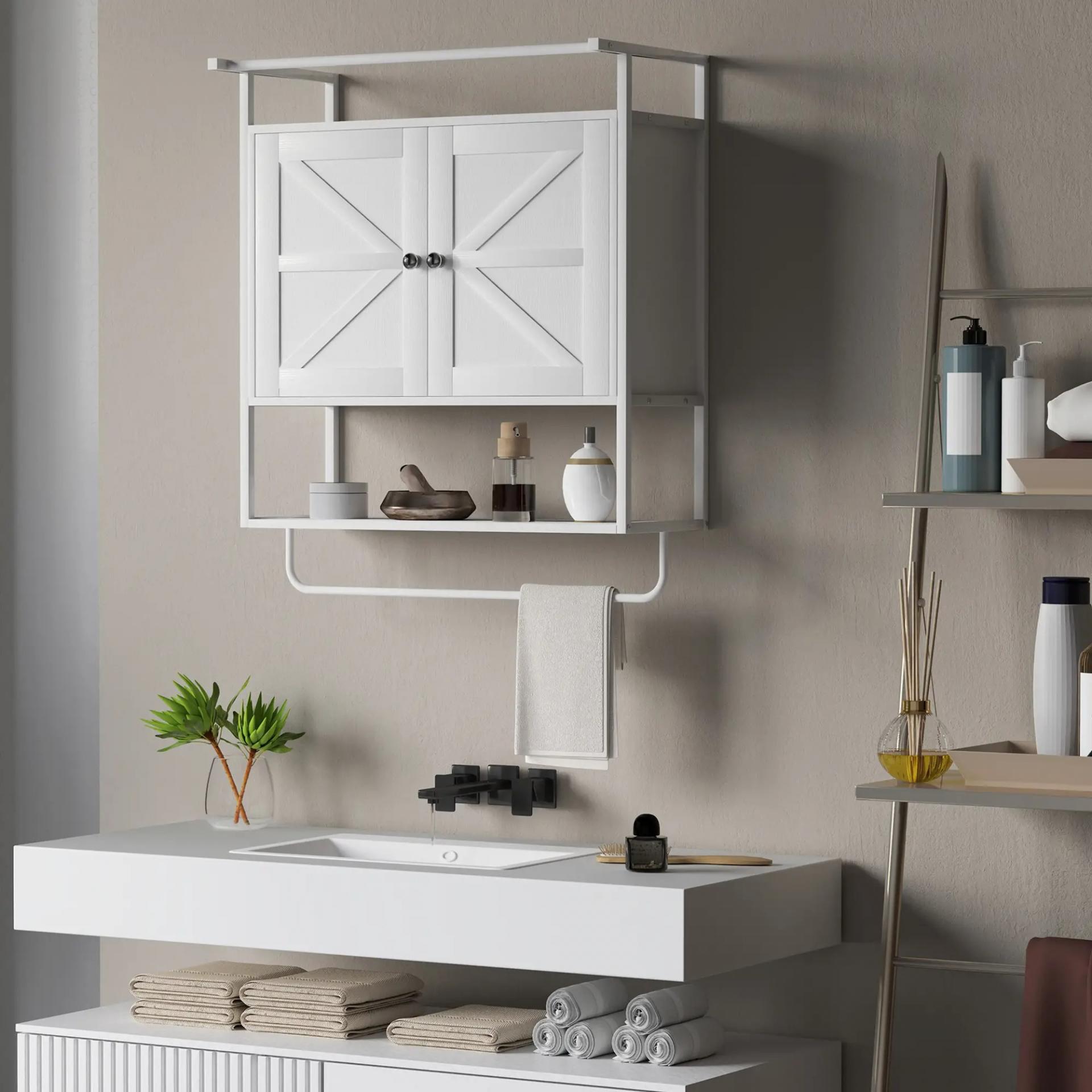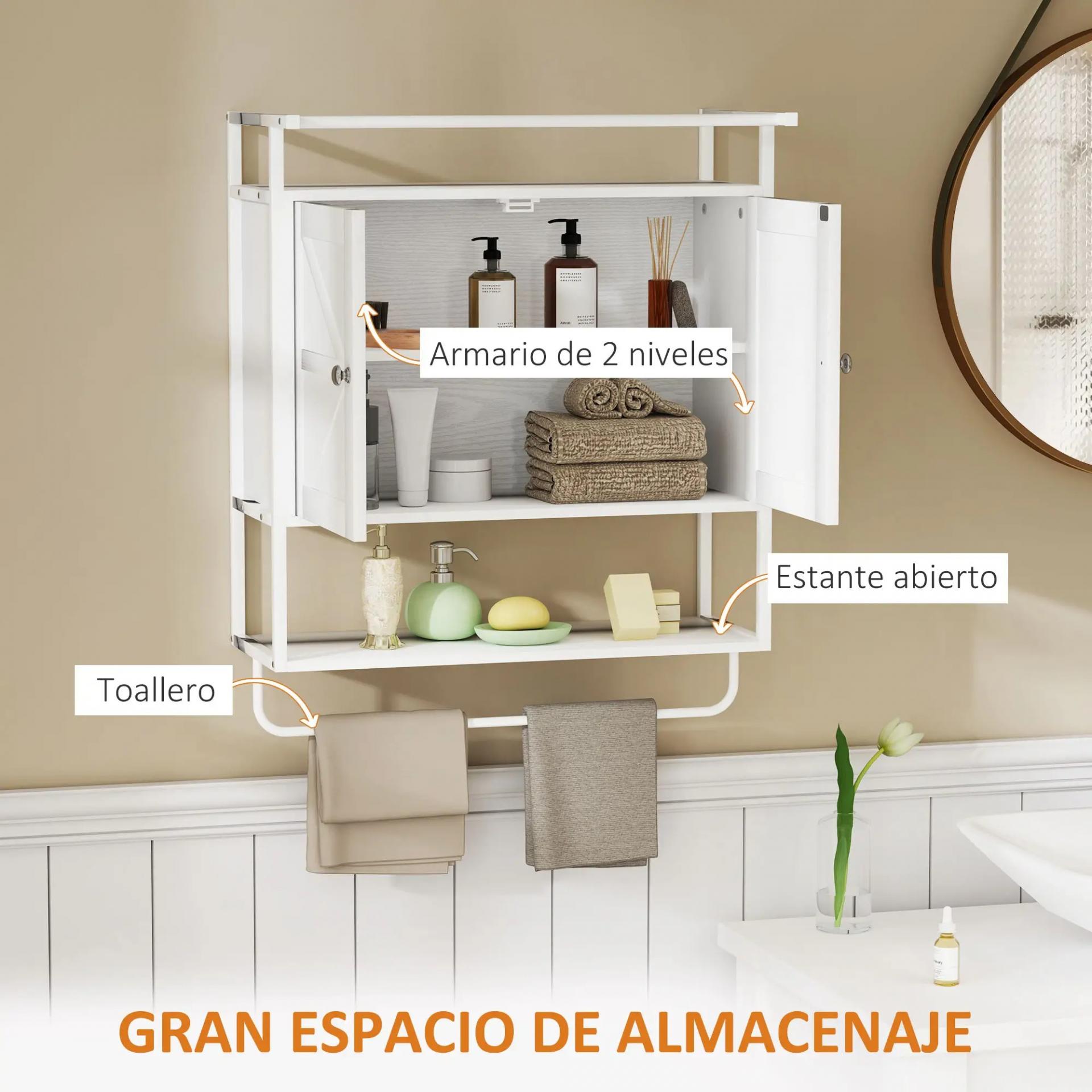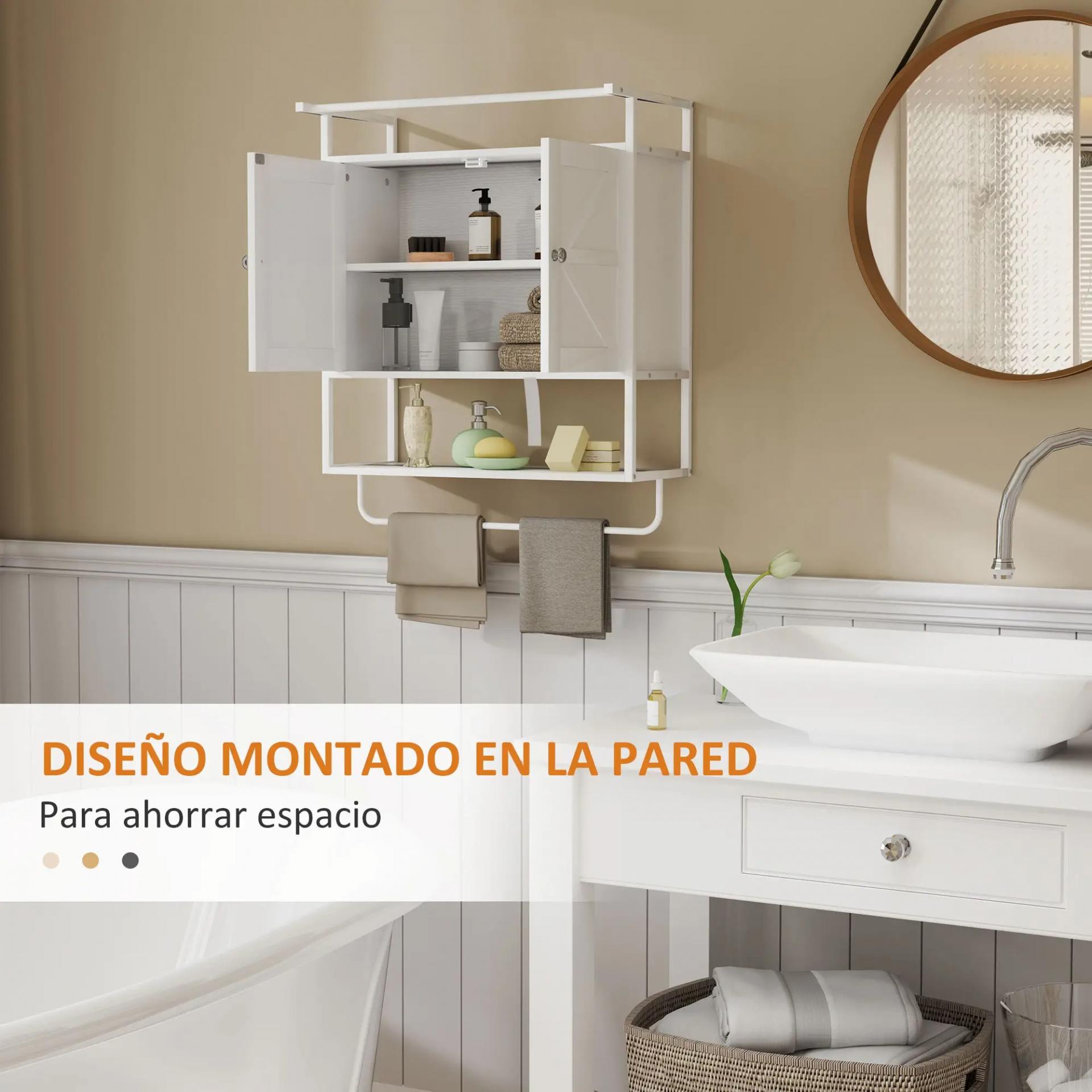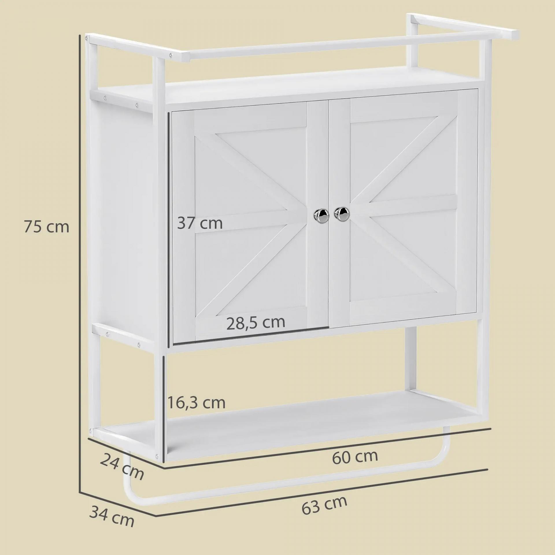 Armario de Pared para Baño Mueble de Baño Suspendido con 2 Puertas Estante Toallero 63x34x75 cm Blanco