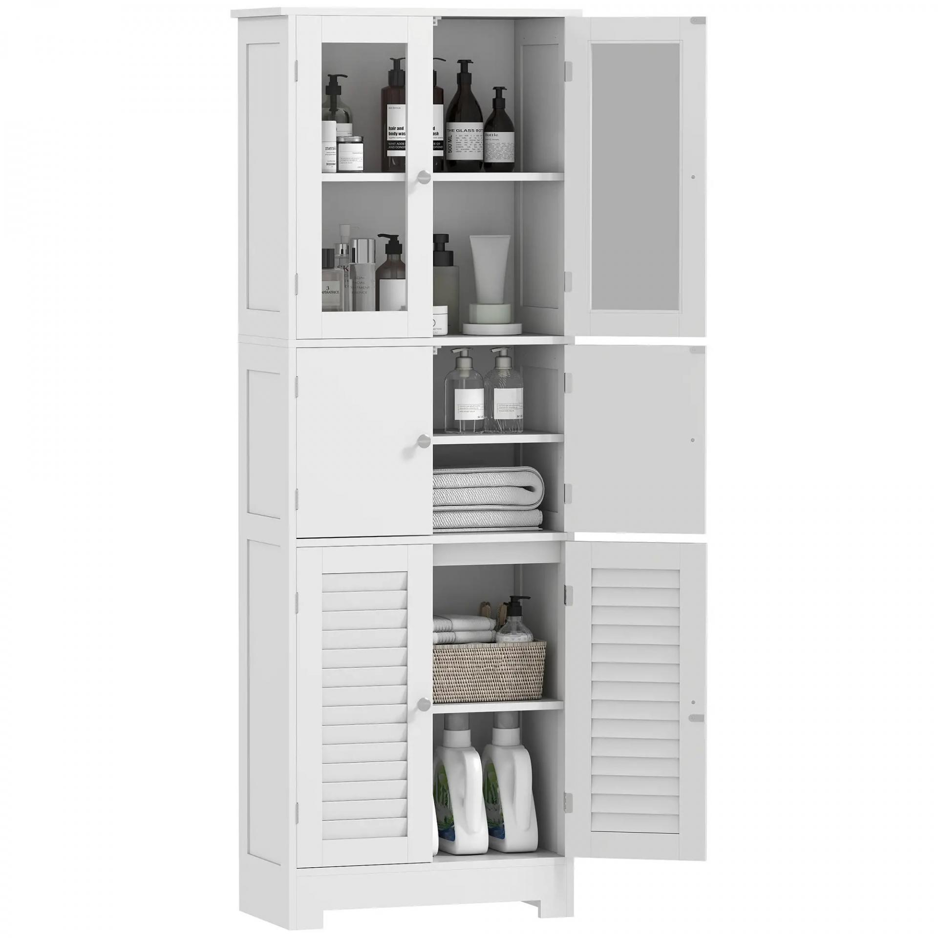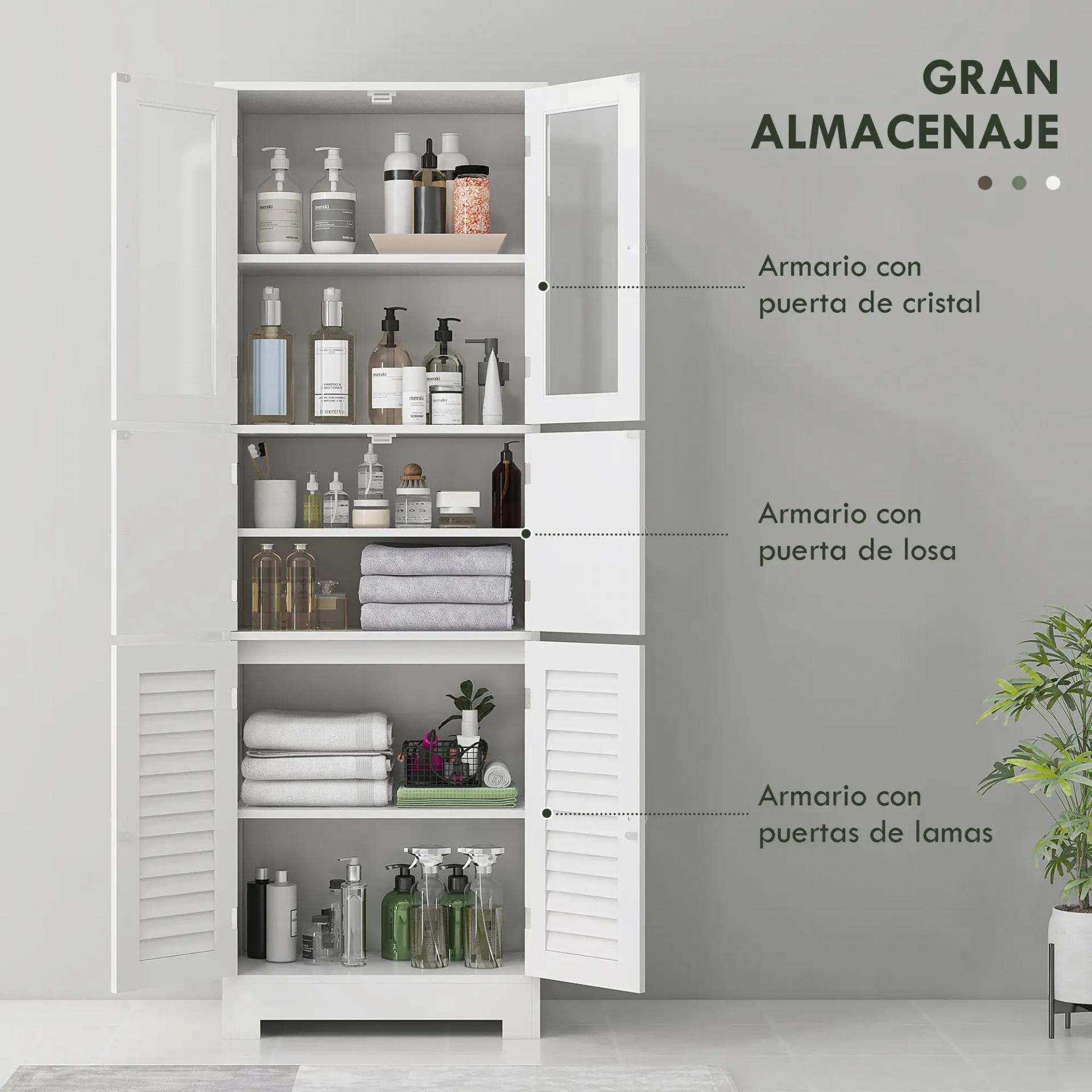 Mueble Auxiliar de Baño con 6 Puertas Estantes Ajustables Antivuelco Armario de Baño Moderno 60x30x170,5 cm Blanco