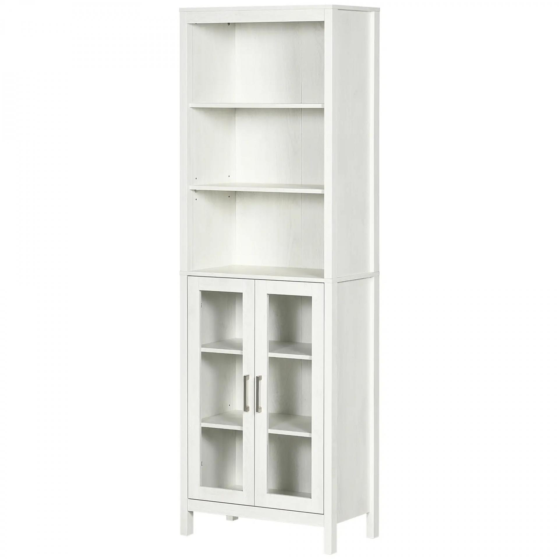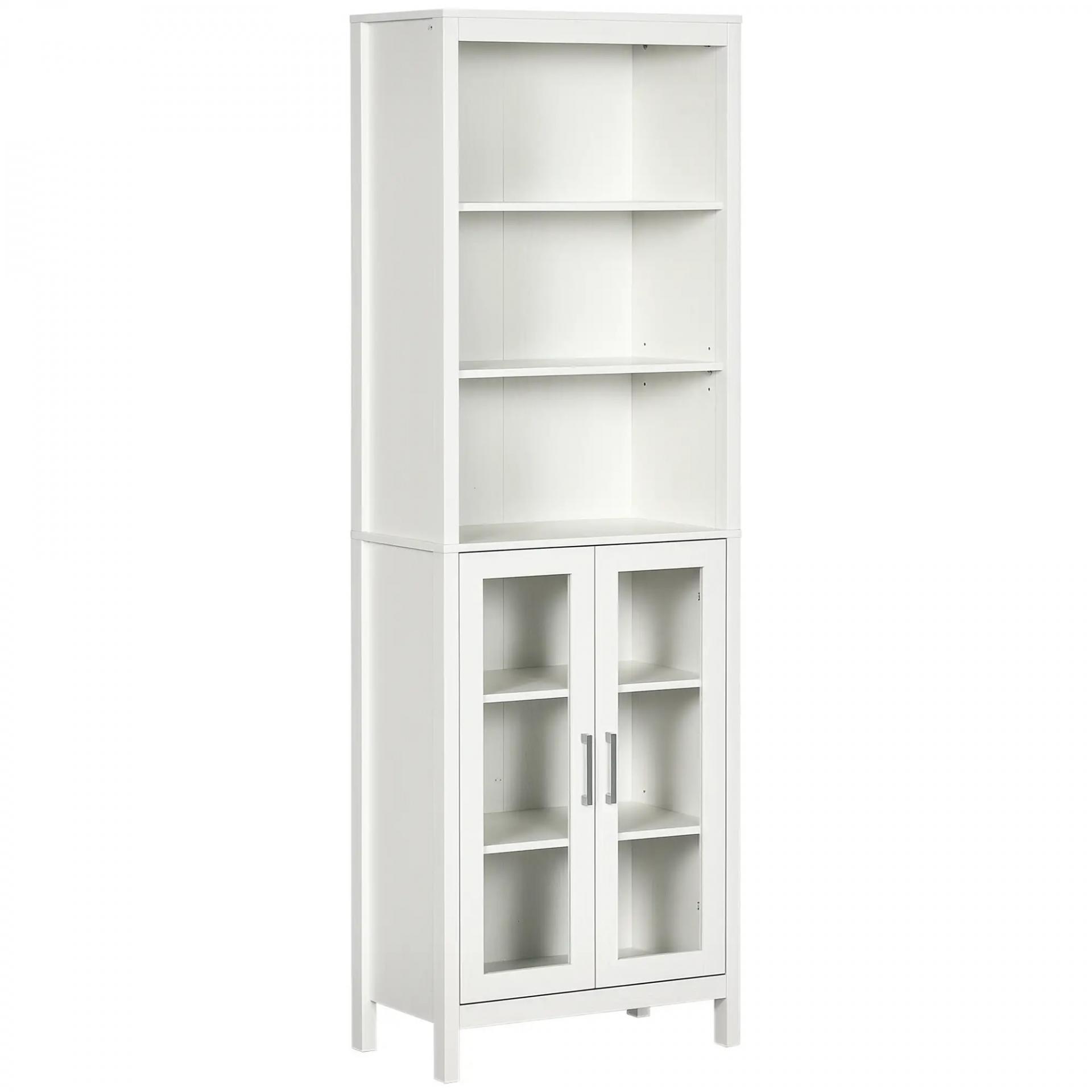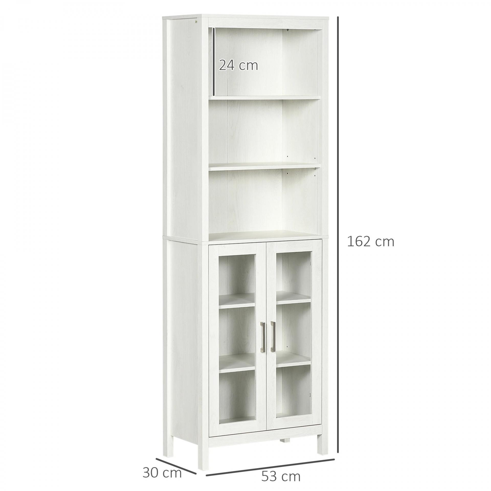 Columna de Baño con 2 Puertas de Vidrio y 3 Estantes Mueble Auxiliar de Estilo Moderno 53x30x162 cm Blanco