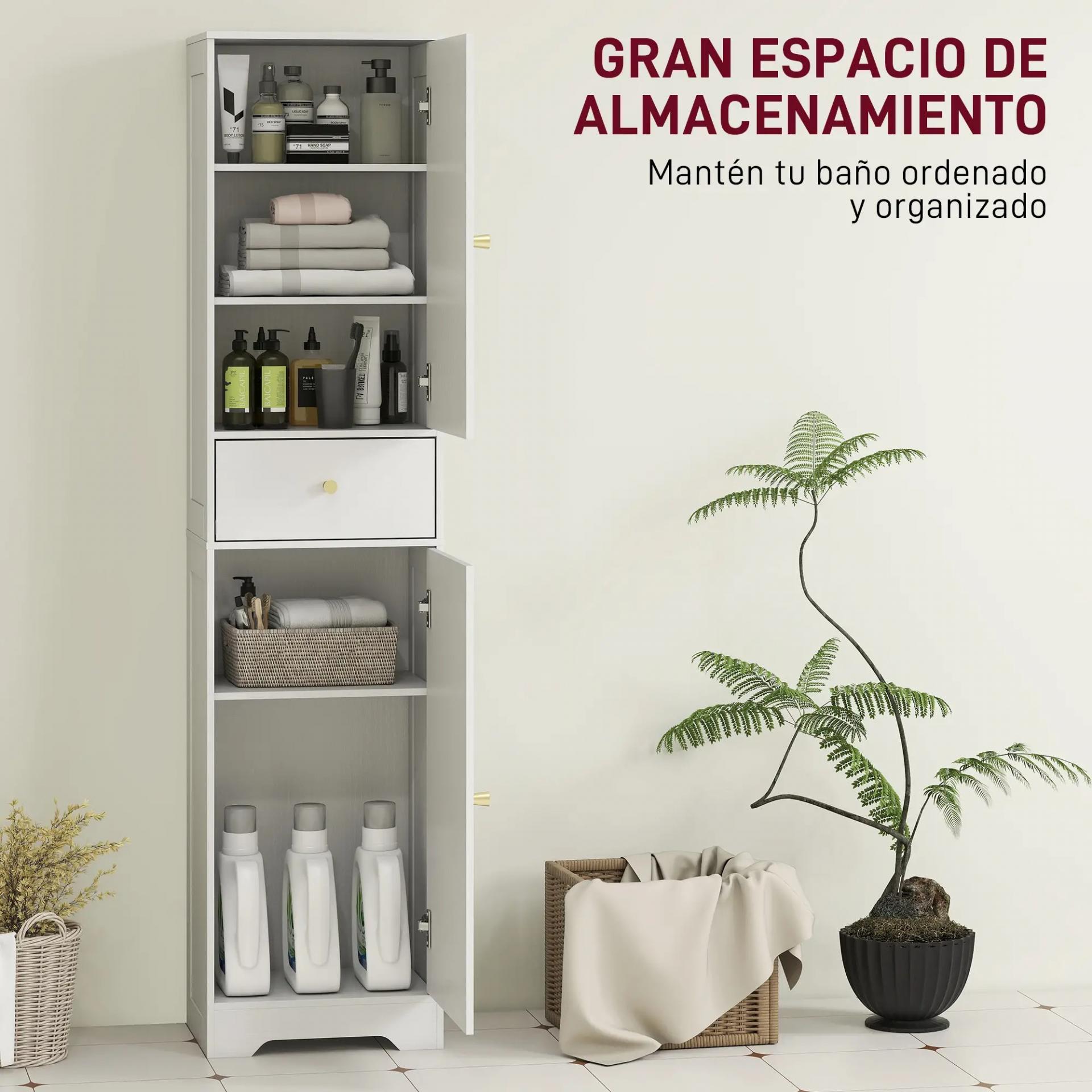 - - APROVECHA MEJOR EL ESPACIO: Su estructura alta y estrecha está pensada para espacios pequeños. Puedes colocarlo junto al lavabo o en una esquina, sin que estorbe y sin renunciar al almacenamiento que necesitas