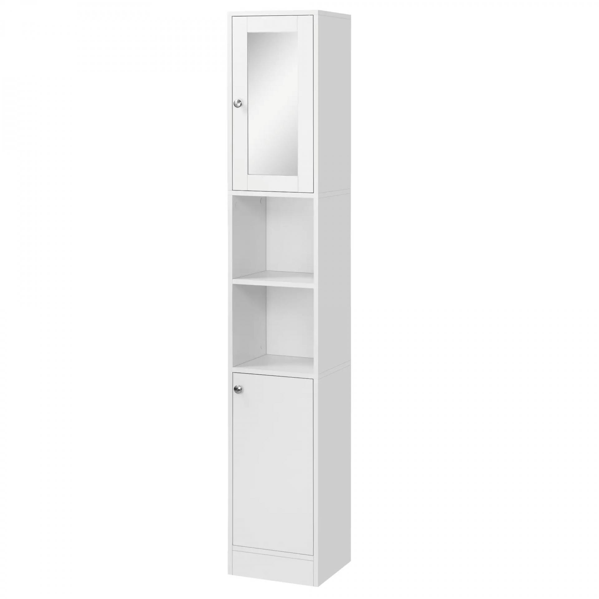Armario Alto para Baño con Espejo Mueble Columna de Baño Madera con 2 Estantes Abiertos 2 Puertas y Baldas Interiores Ajustables 30x28x180 cm Blanco