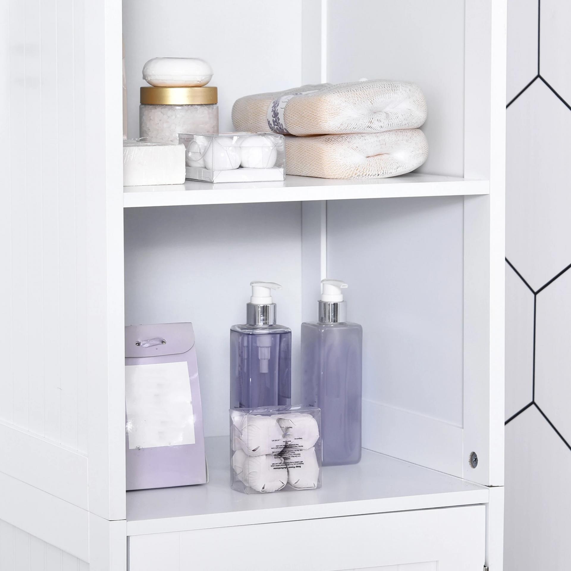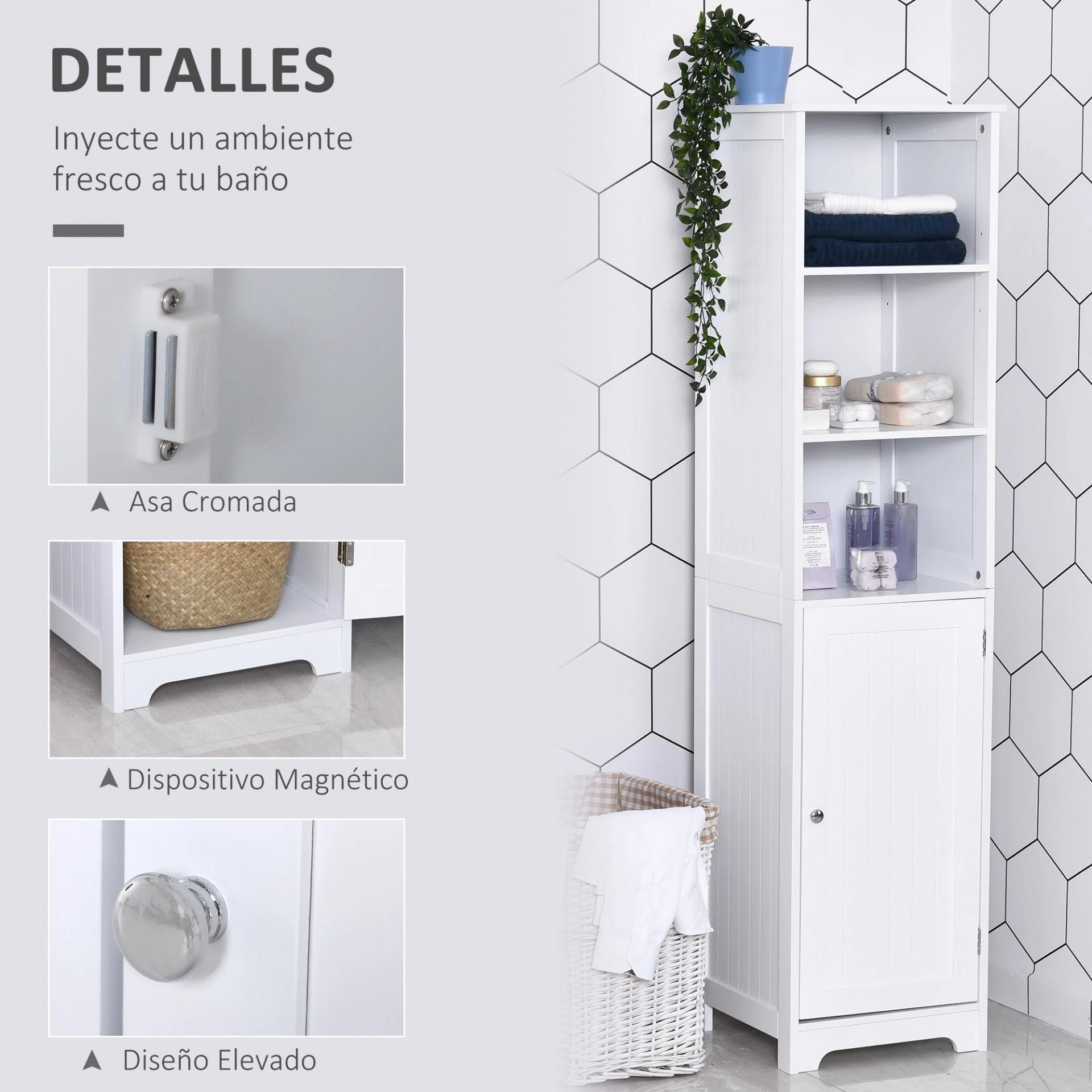 Armario Alto de Baño de 5 Niveles Columna Auxiliar de Baño con 3 Estantes 1 Puerta y Balda Ajustable 40x38x160 cm Blanco