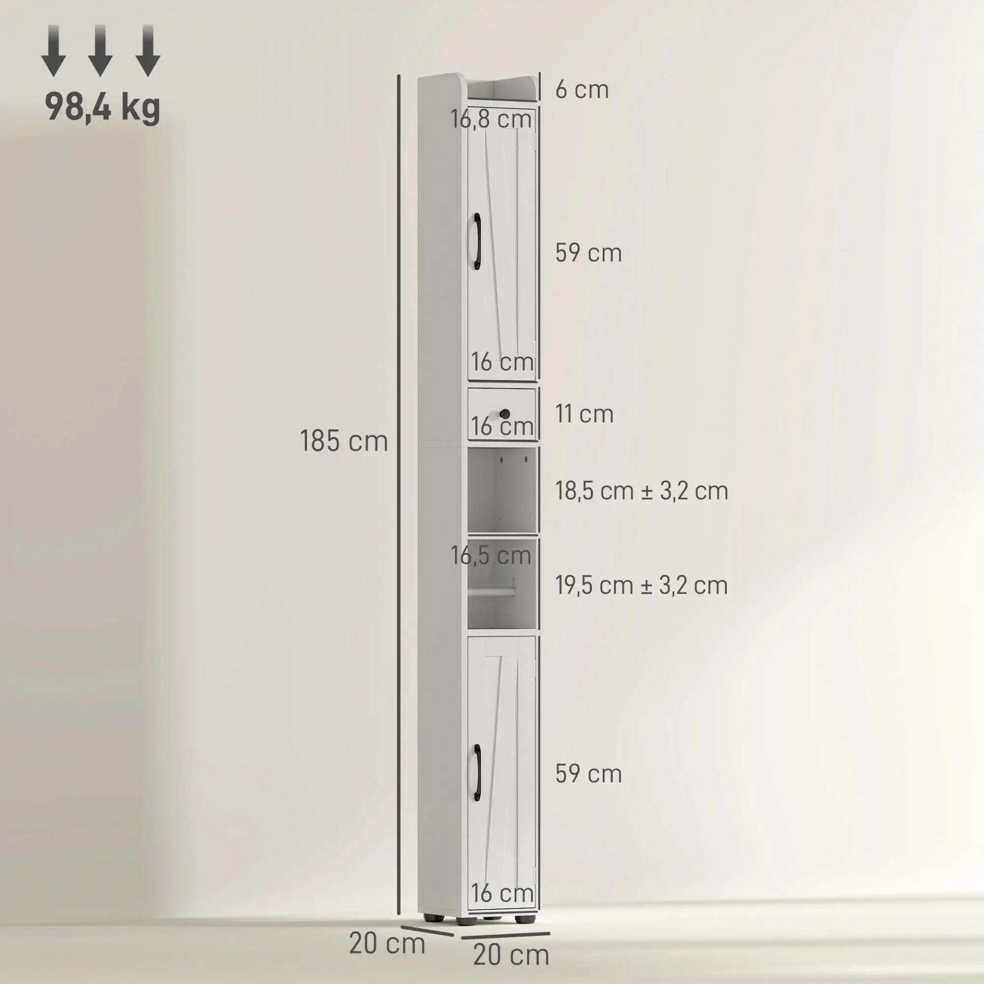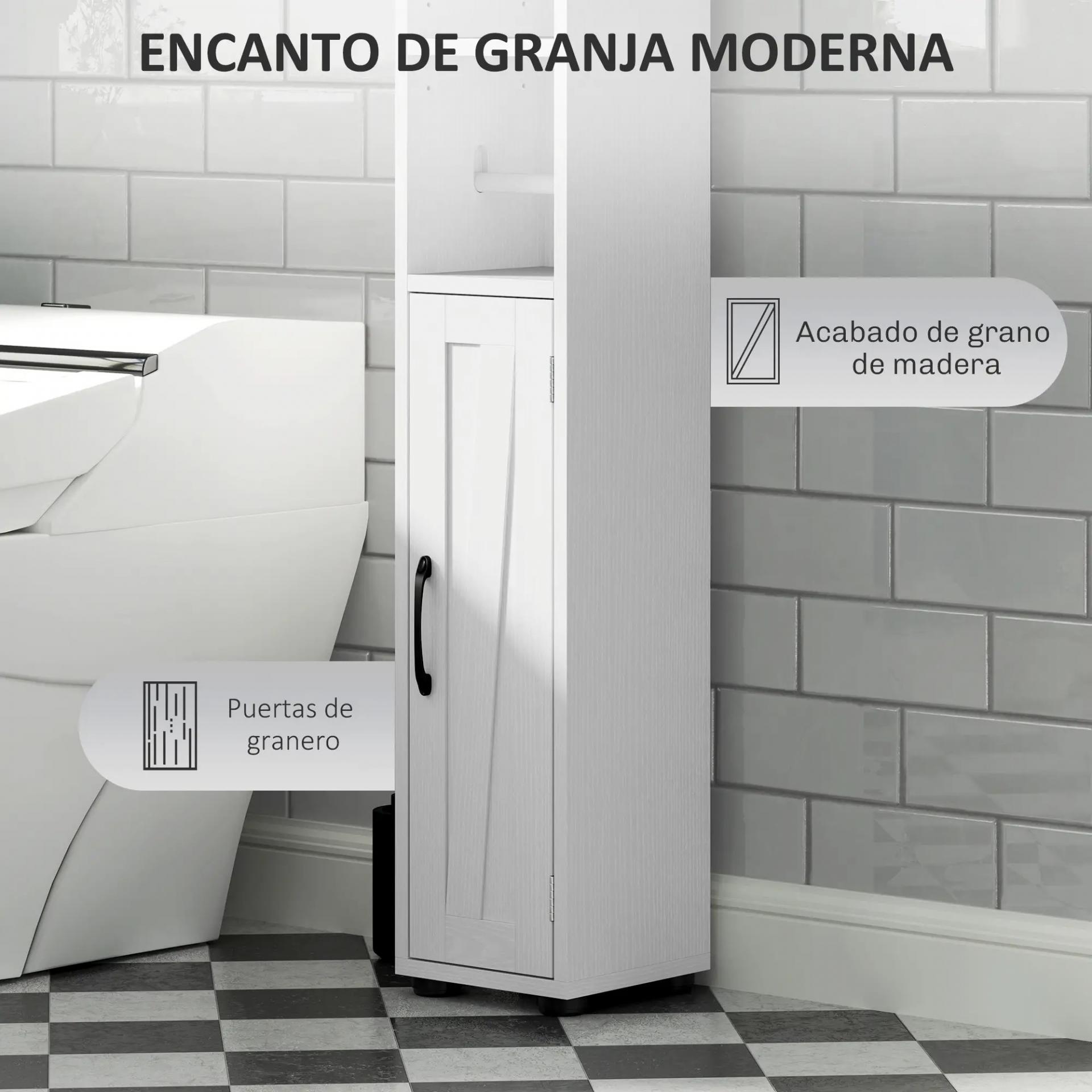 Columna de Baño con 2 Puertas Compartimento Abierto Estantes Ajustables y Portarrollos 20x20x185 cm Blanco