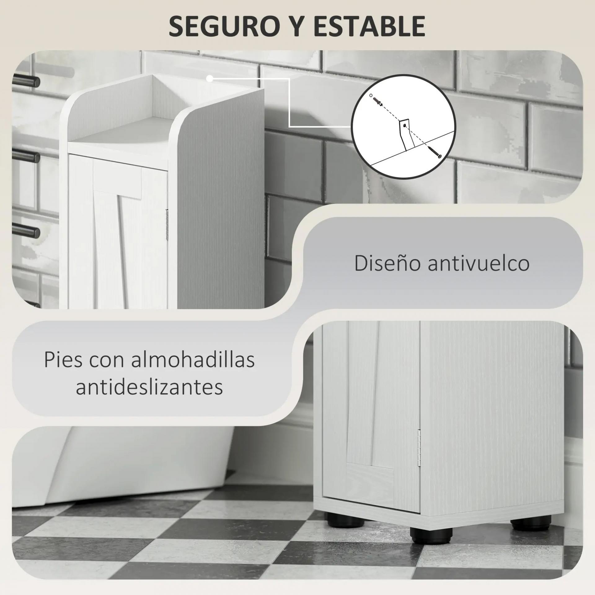 - ESPACIO APROVECHADO AL MÁXIMO: Organiza tu baño de forma eficiente con este mueble auxiliar de baño estrecho de color blanco. Incluye dos armarios con puertas, un práctico cajón, dos compartimientos abiertos, una tapa segura y un soporte para papel higiénico