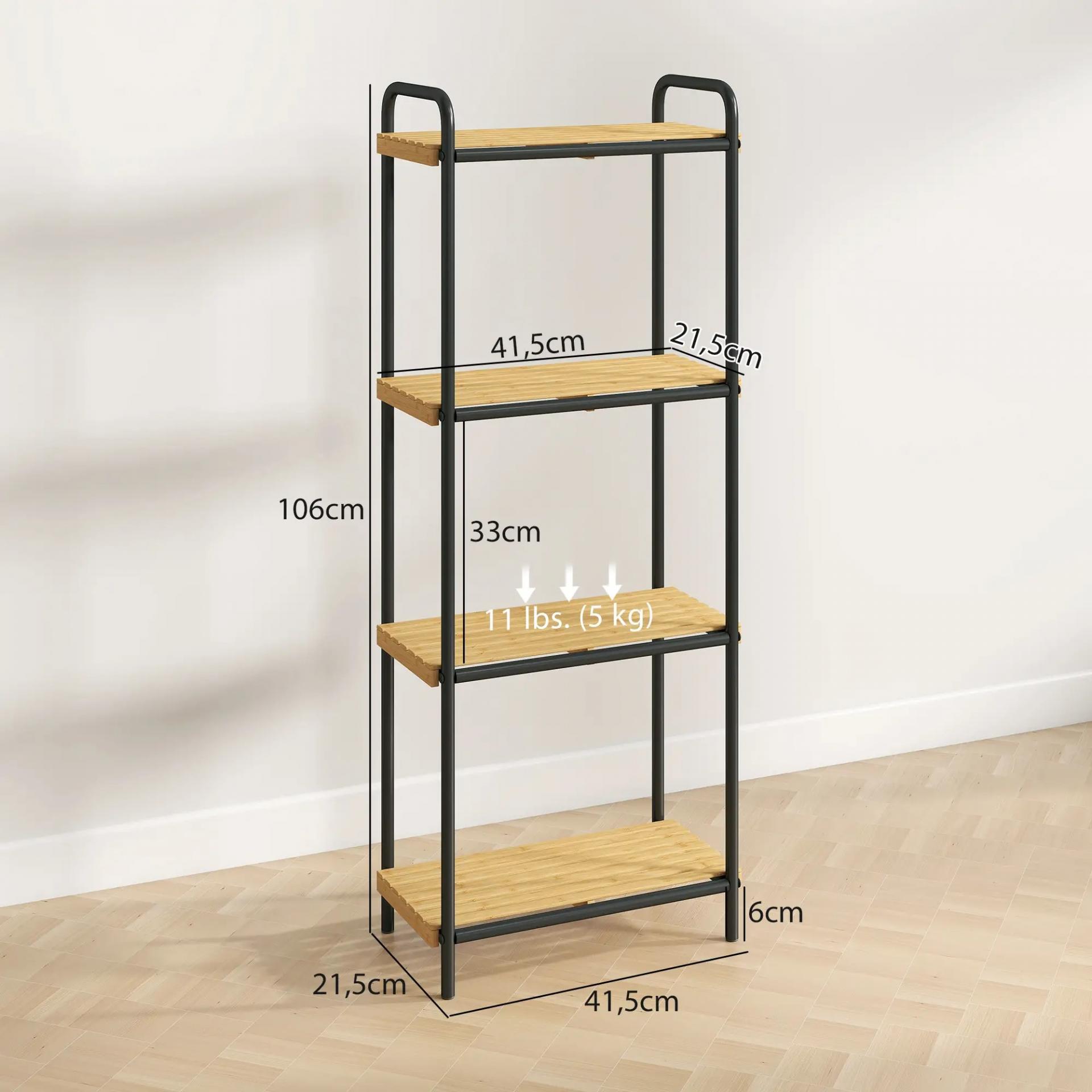 Estantería de Baño de Bambú con 4 Baldas Abiertas Diseño de Lamas y Estructura de Acero 41,5x21,5x106 cm Natural