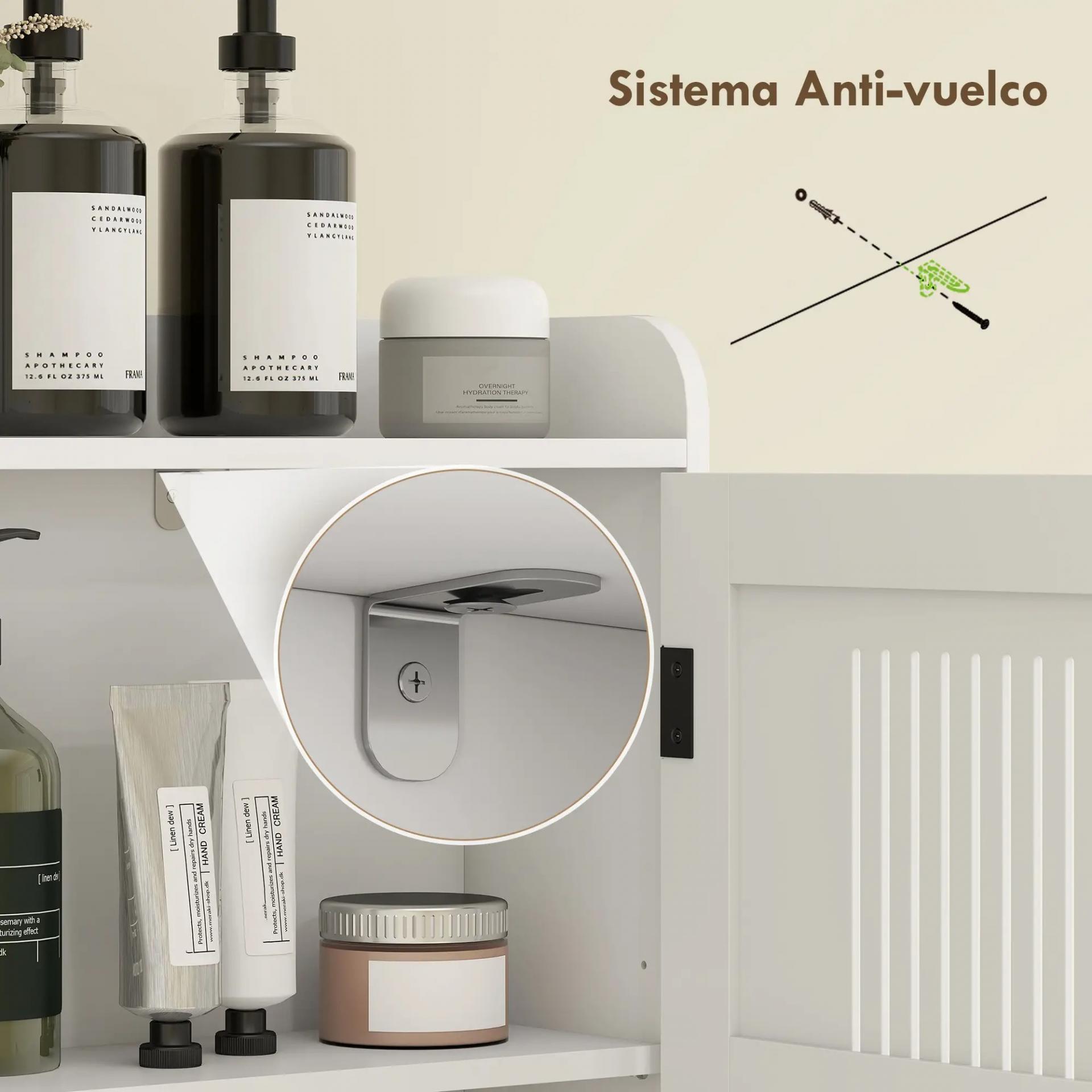 - - RESISTENTE Y ESTABLE: Fabricado en MDF resistente, este mueble sobre inodoro es ideal para un uso prolongado. Incluye sistema antivuelco para mayor estabilidad y seguridad en tu día a día