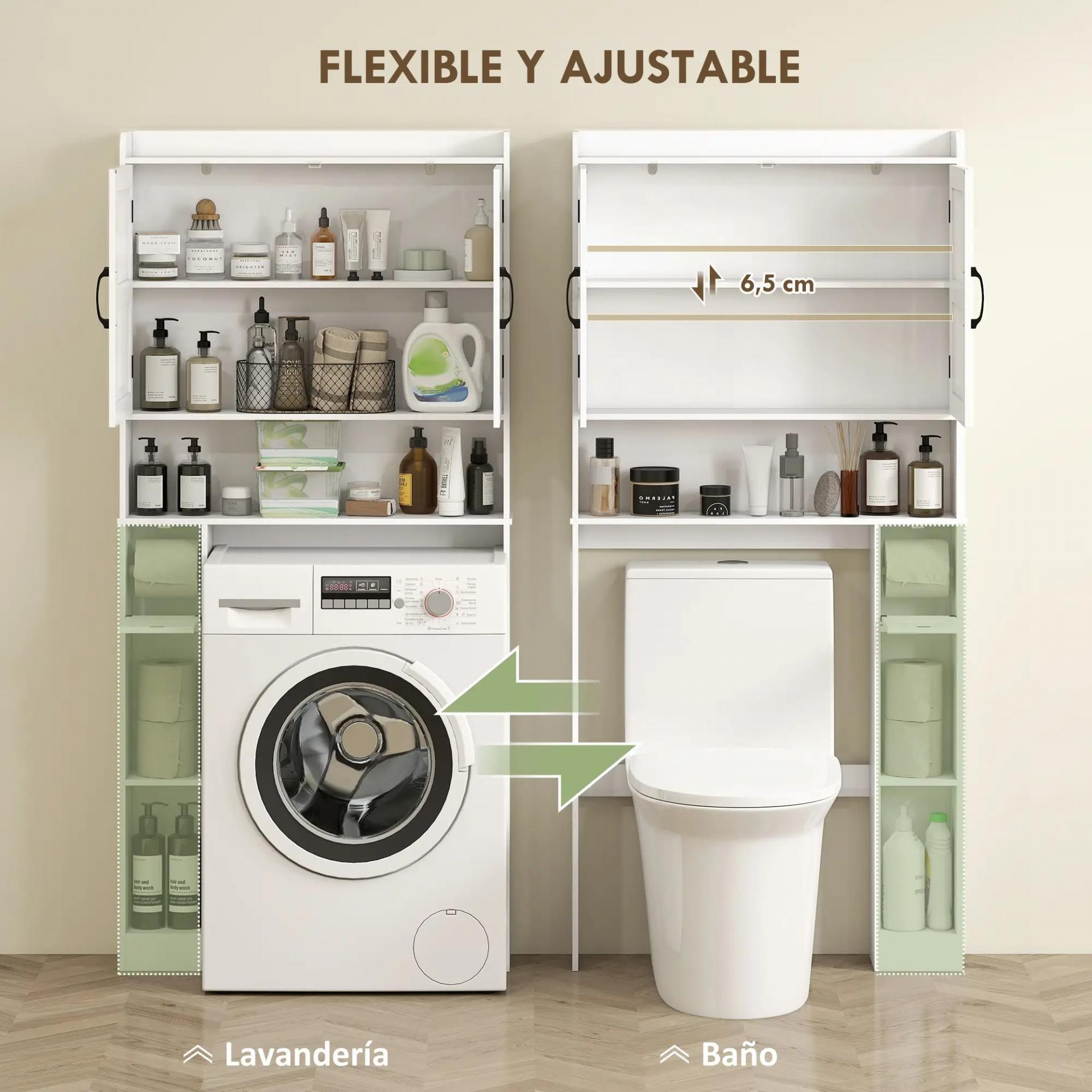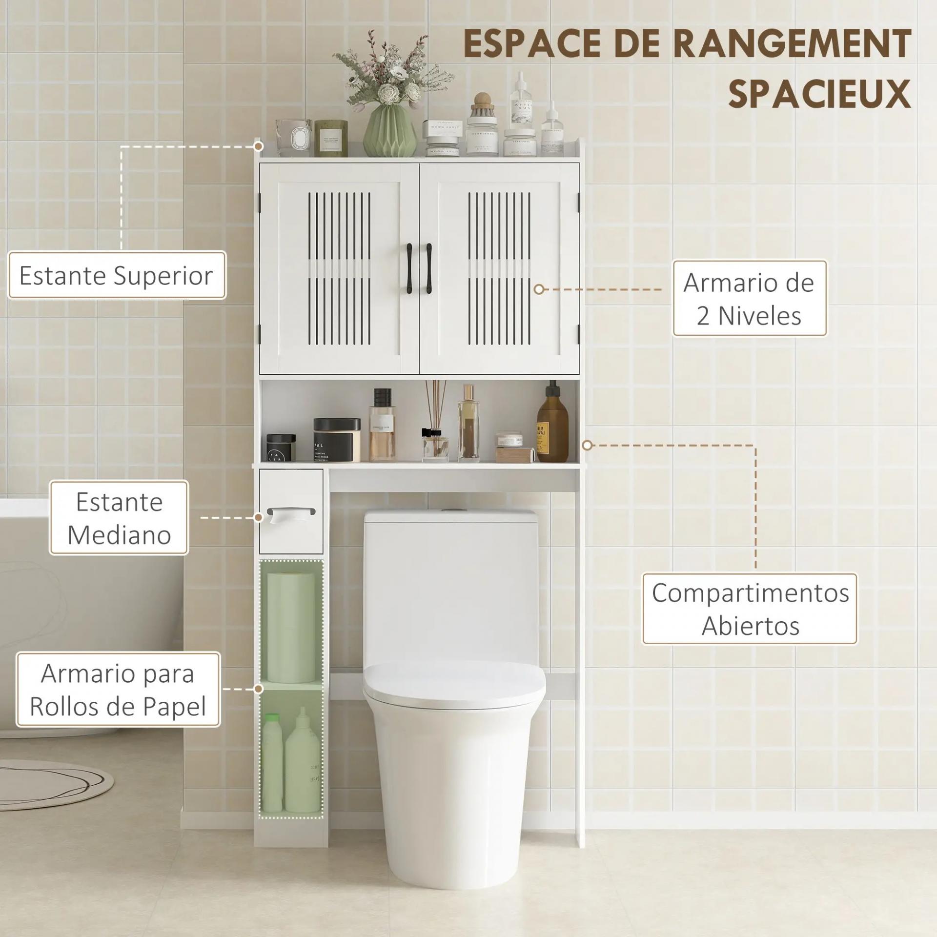 Estantería sobre Inodoro con Estante Ajustable 2 Puertas Soporte para Papel Higiénico y Estantes Abiertos para Baño Blanco