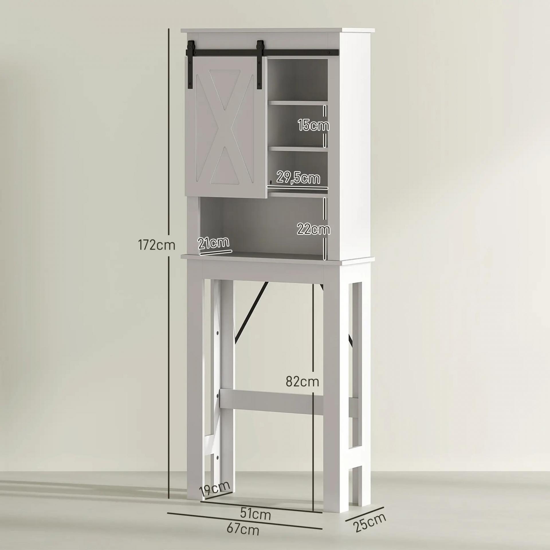 Mueble sobre Inodoro para el Baño con Puerta Corredera de Granero y 6 Compartimentos Estilo Rústico 67x25x172 cm Blanco