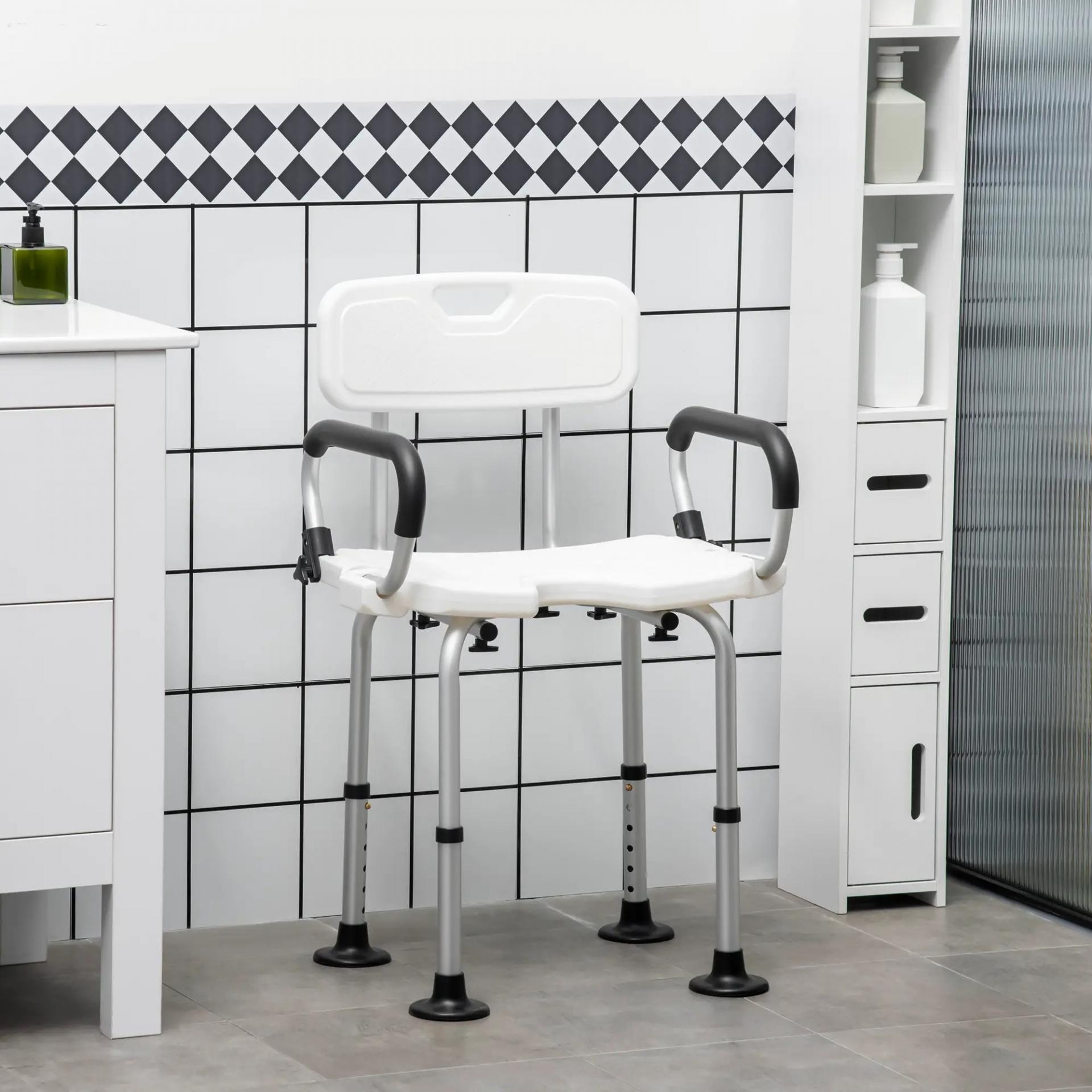 Silla para Ducha Taburete de Ducha Antideslizante con Altura Ajustable y Apoyabrazos Regulable Carga 136 kg