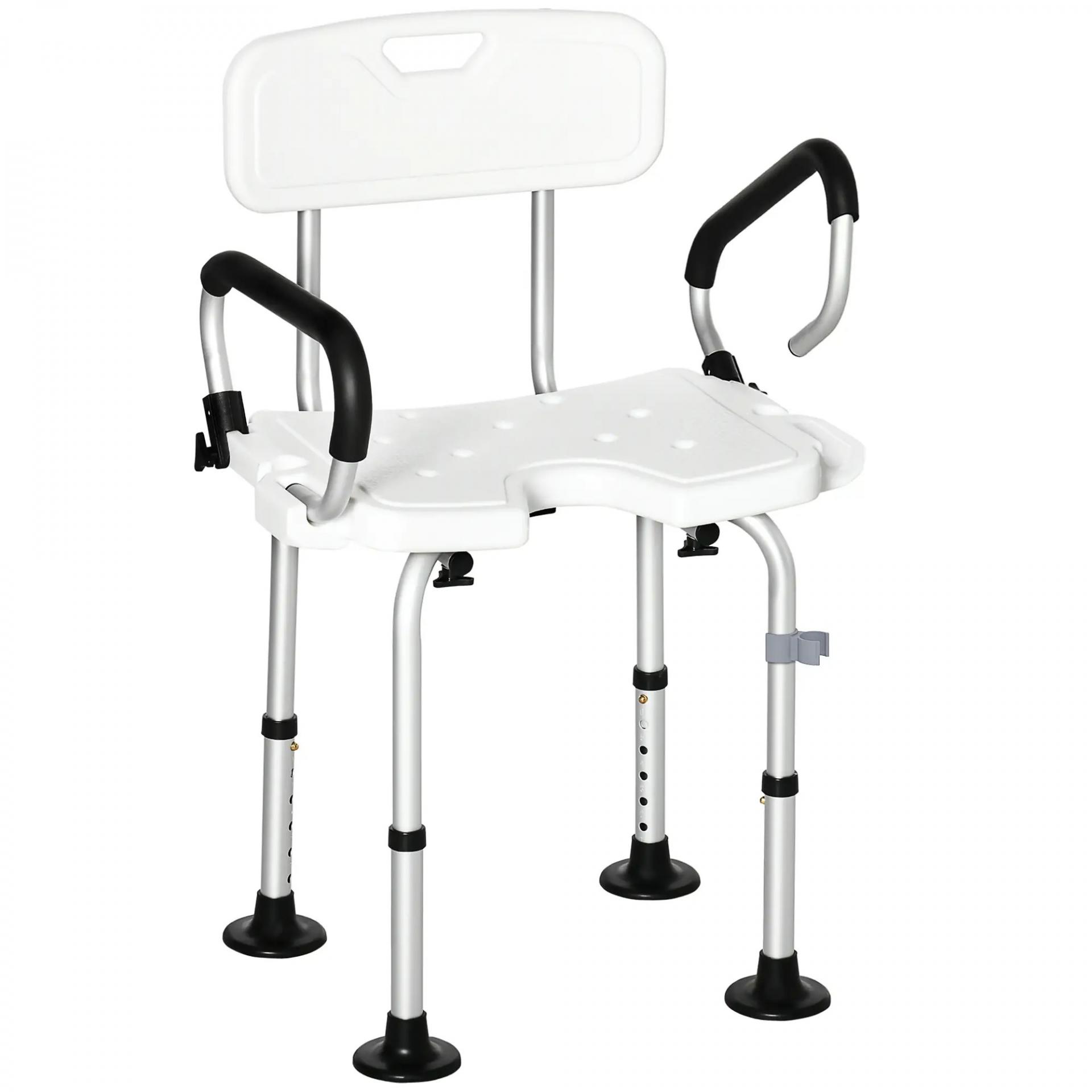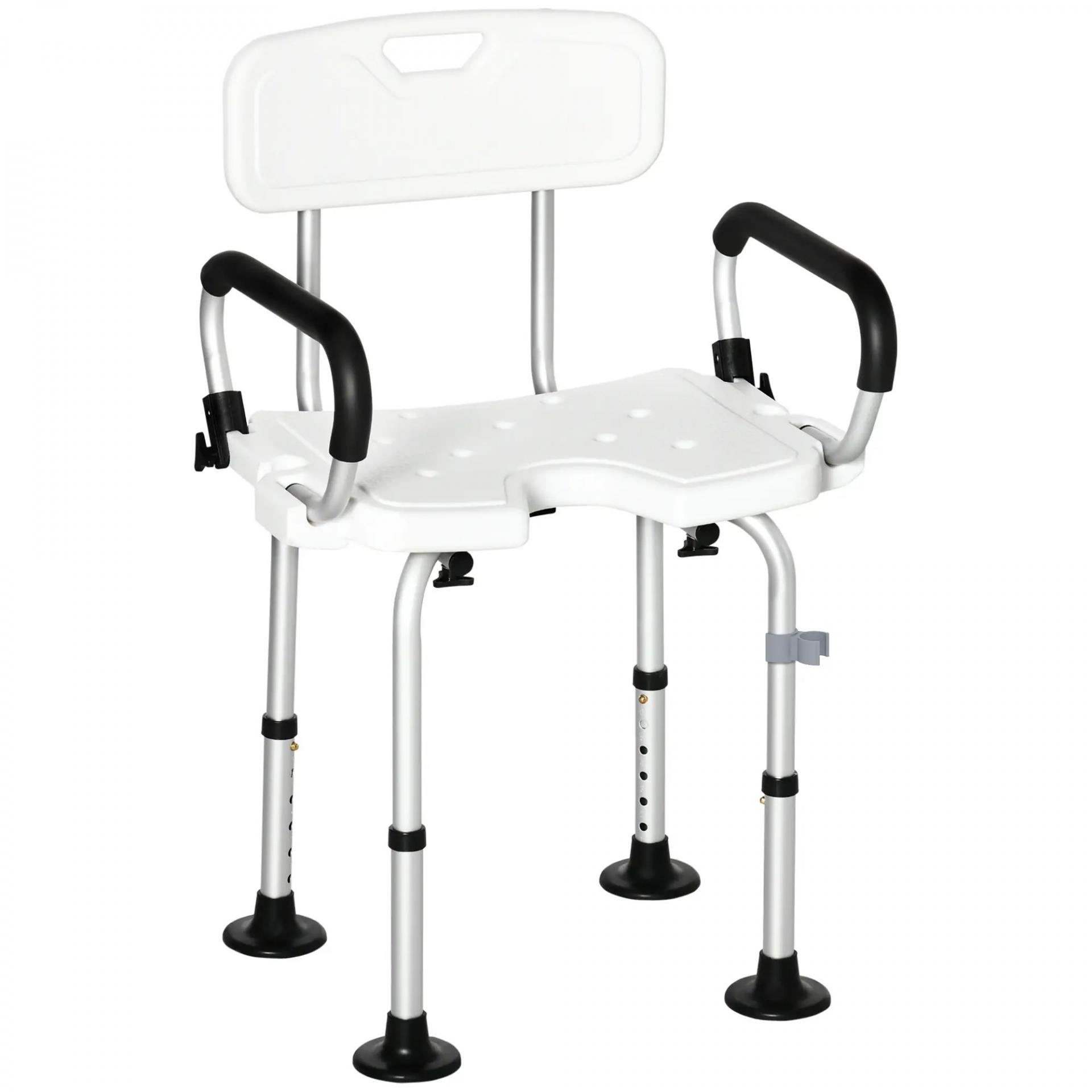 - BRAZOS ABATIBLES Y CORTE EN FORMA DE U: Diseñado para ofrecer un lugar de descanso a quienes lo necesiten mientras se duchan o bañan. Esta silla de ducha con brazos abatibles es ideal para personas mayores, discapacitadas y embarazadas para girar con facilidad. Además, el corte en forma de U es absolutamente genial, ya que permite limpiar las partes íntimas con facilidad mientras se está sentado