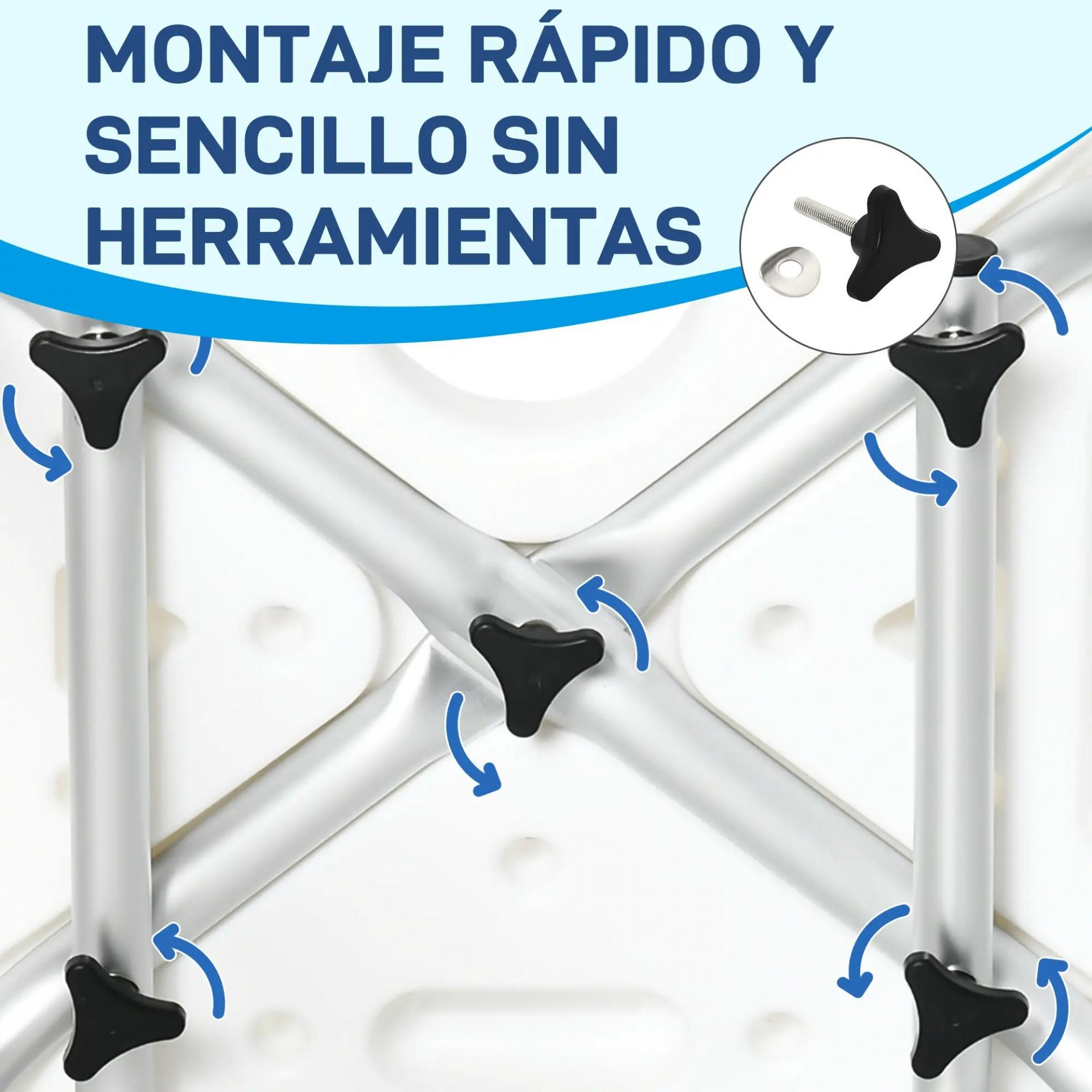 - - MONTAJE SIN HERRAMIENTAS: El montaje es sencillo y no requiere herramientas. Este taburete para ducha se puede montar fácilmente en cuestión de minutos, siguiendo las instrucciones incluidas