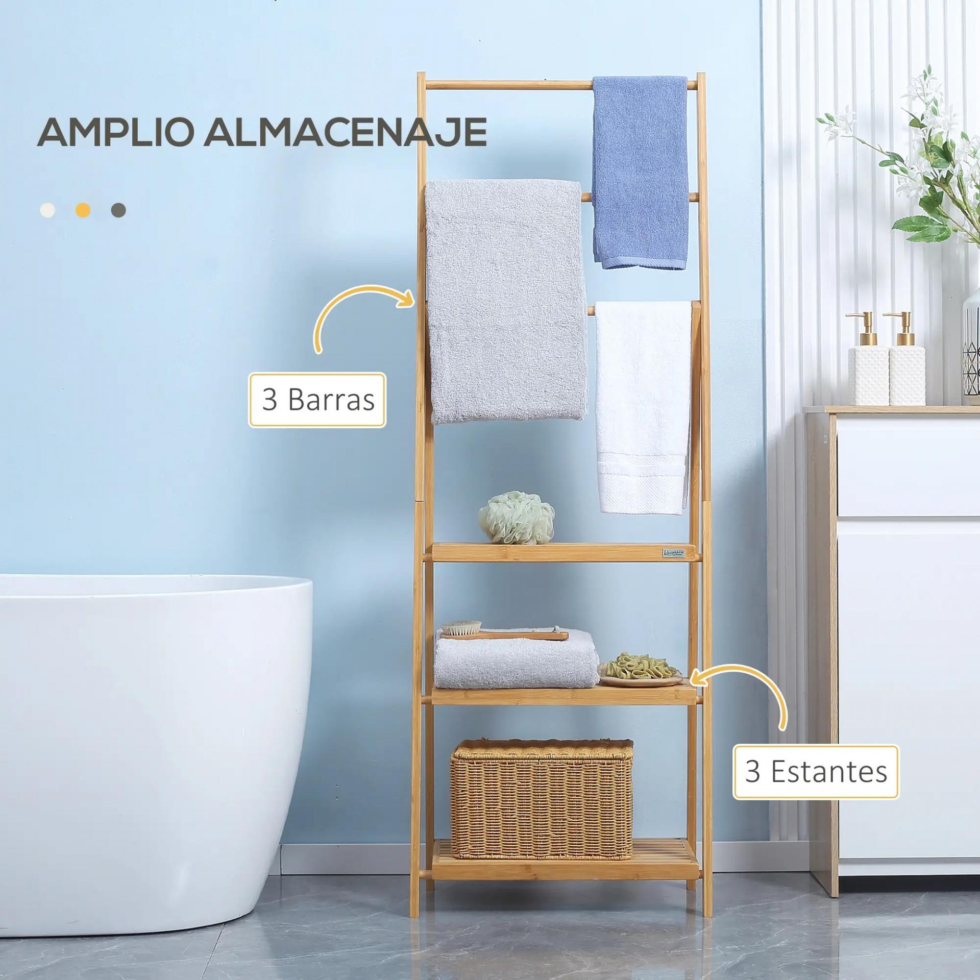 Toallero de Pie de Bambú con 3 Barras Tipo Escalera Plegable con 3 Estantes para Baño 53x30,5x152 cm Natural