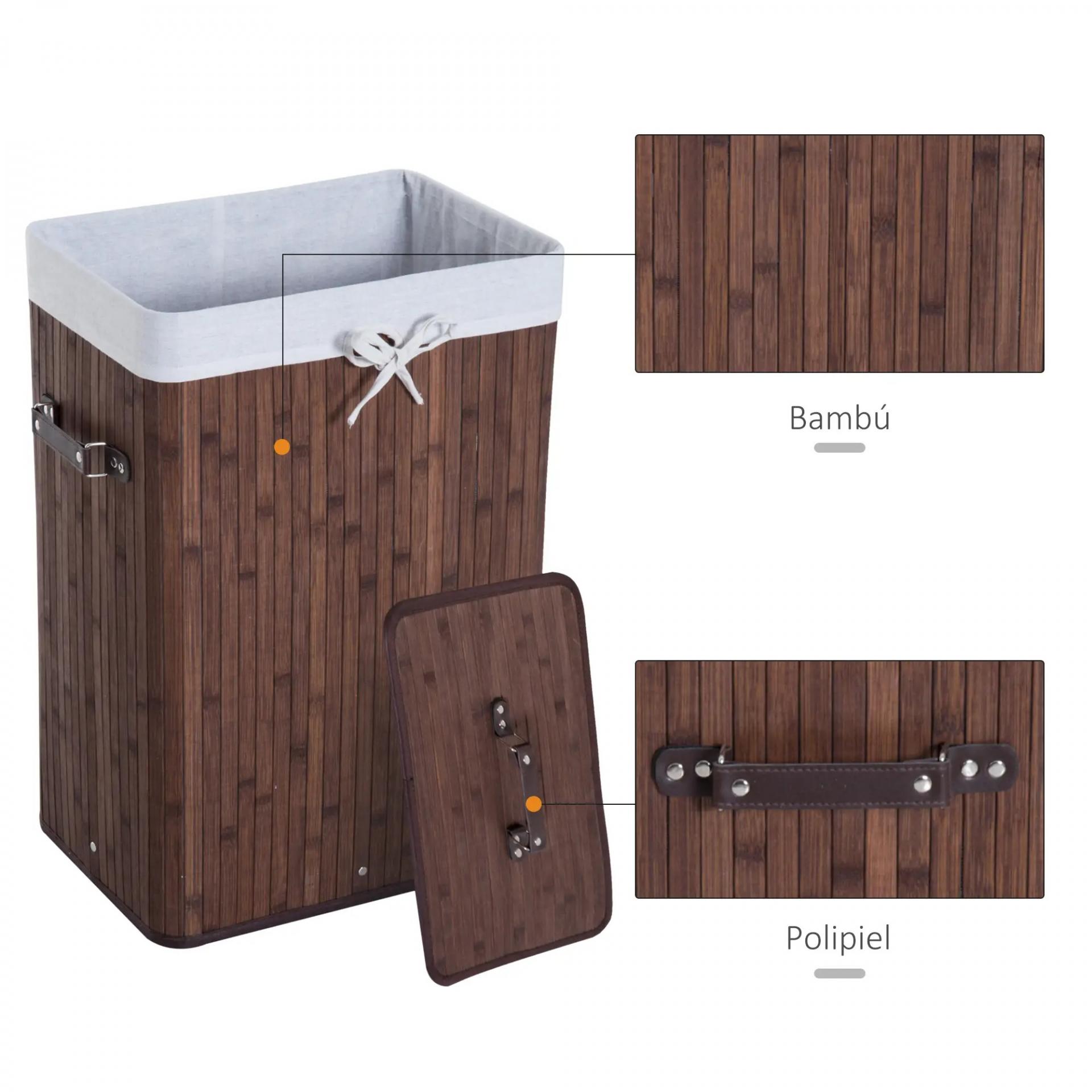 Cesto para la Ropa Sucia Plegable con Tapa Cubo para la Colada Rectangular con Asas 40x30x60 cm Marrón