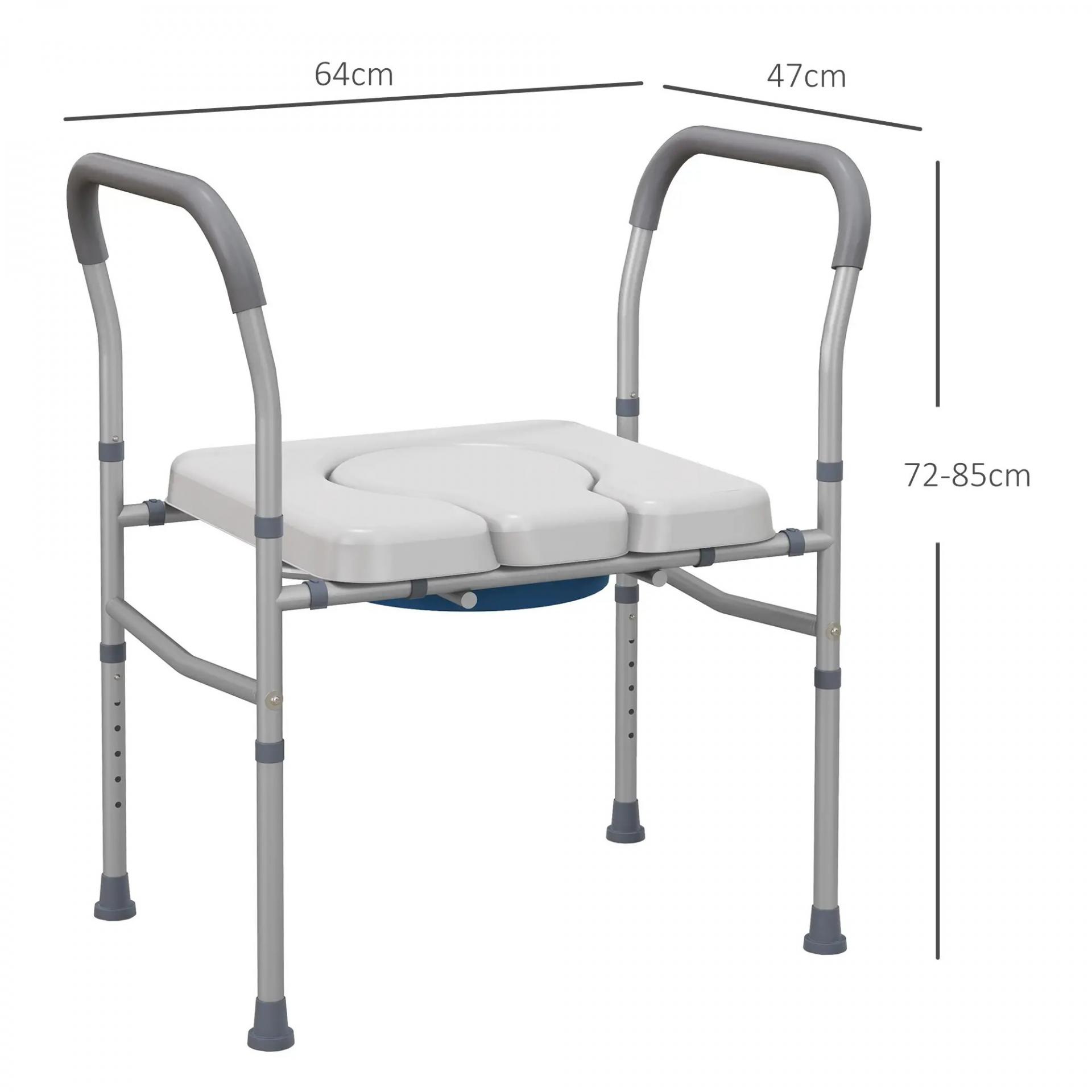 - - ALTURA AJUSTABLE Y BALDE EXTRAÍBLE: Con altura ajustable en 6 posiciones entre 70 y 82 cm, esta silla con inodoro se adapta a diferentes necesidades. Además, el cubo del inodoro se puede retirar fácilmente para facilitar la limpieza