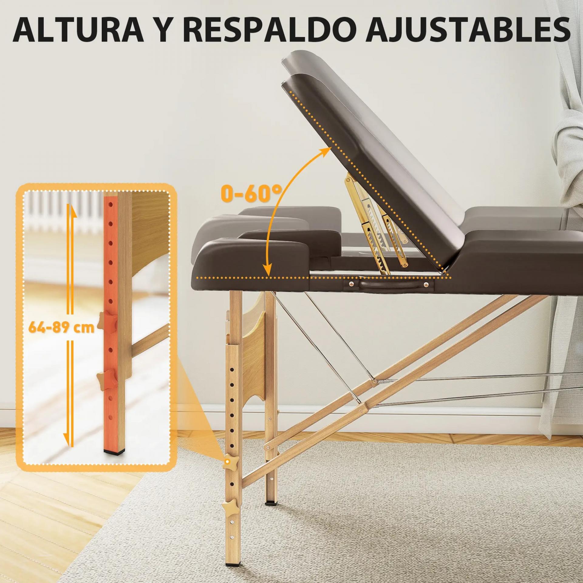 - AJUSTE PERSONALIZADO: Altura ajustable 64–89 cm y respaldo reclinable 0–60°. Con superficie de 185x60 cm, reposacabezas y reposabrazos acolchados, esta camilla ofrece soporte y comodidad para masajes, belleza o faciales