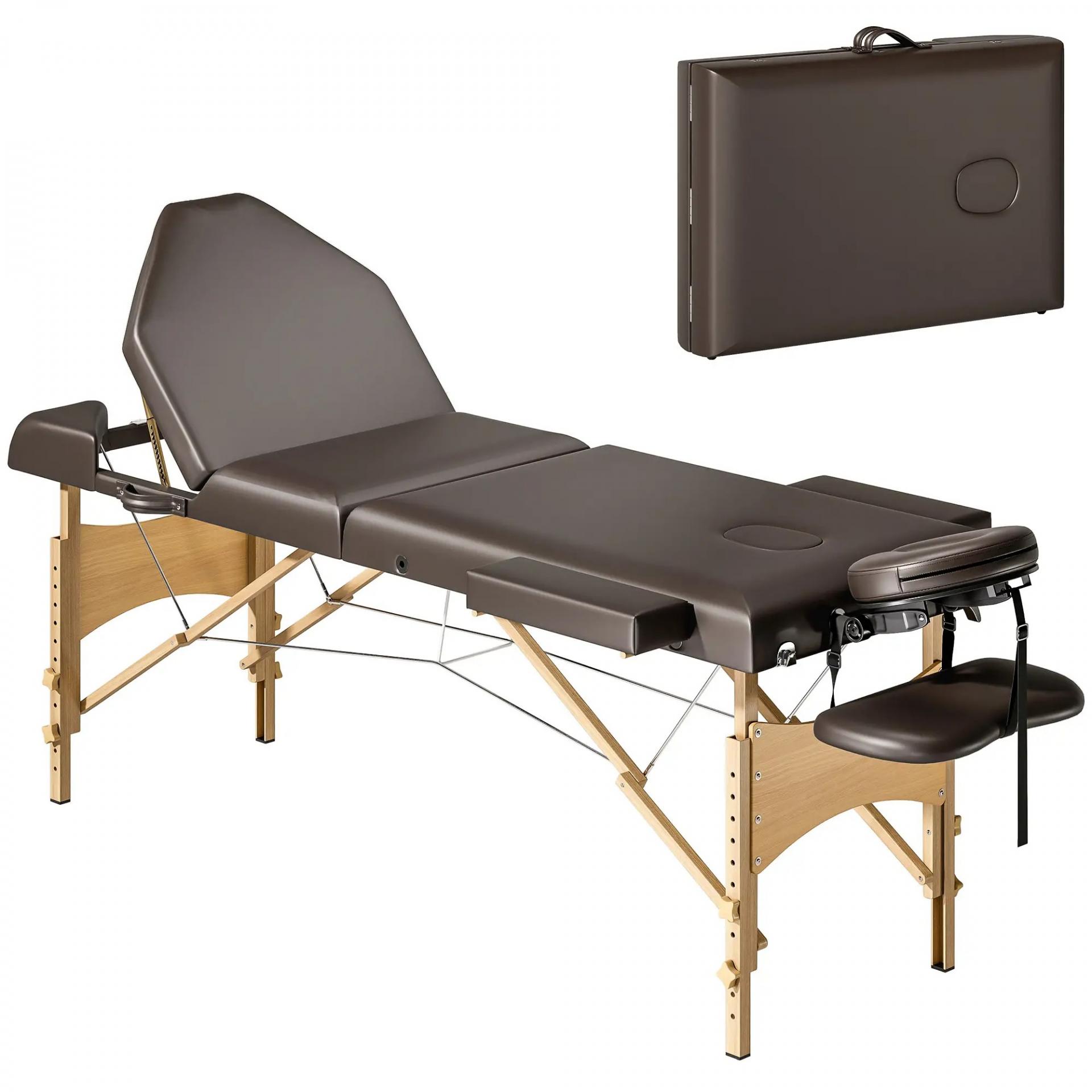Camilla Masaje Plegable de Madera de 3 Zonas con Altura Respaldo Reposacabezas Ajustables Brazos 215x60x64-89 cm Marrón