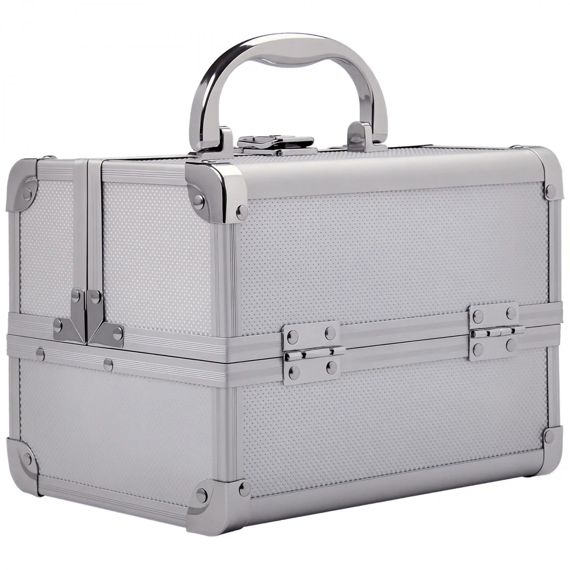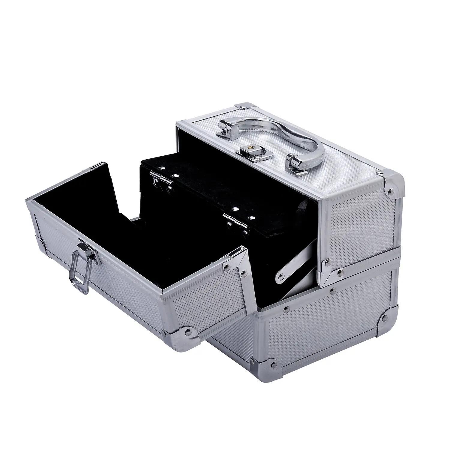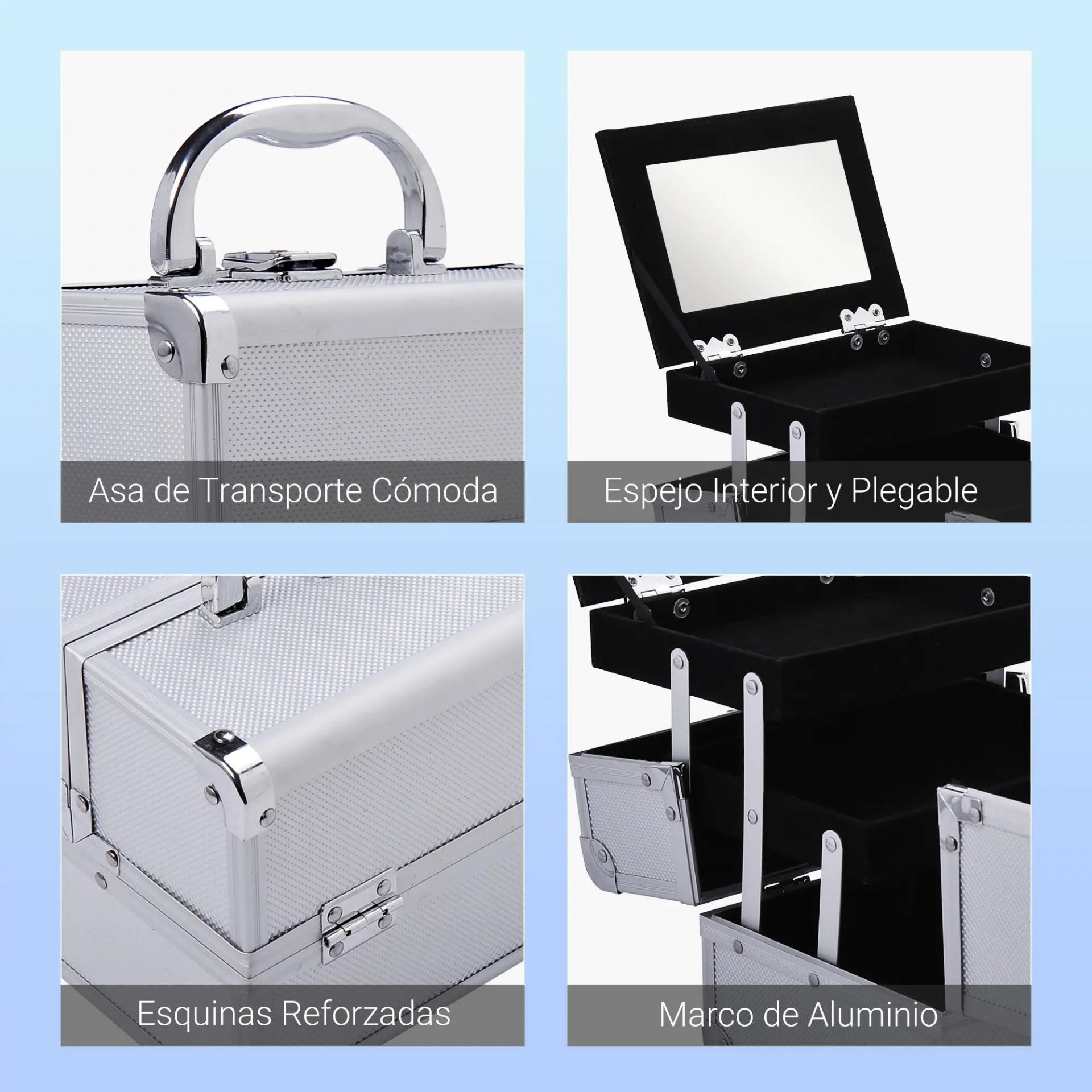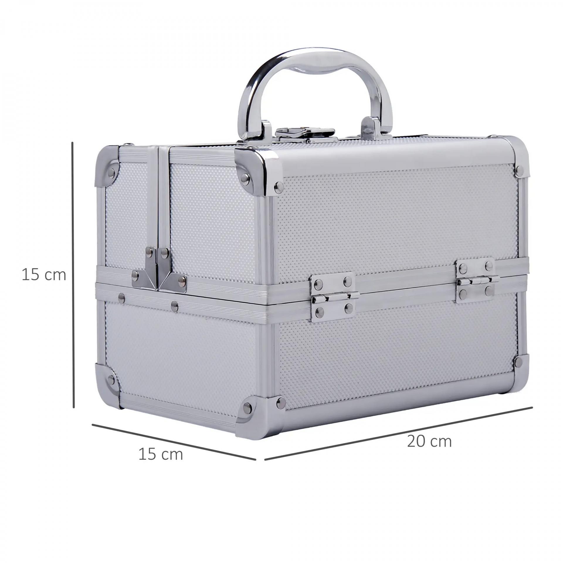 Maletín Maquillaje Profesional Estuche de Cosmético Portátil con Bandejas de 3 Niveles y Espejo 2 Llaves para Joyero Manicura Viaje 20x15x15 cm Plateado