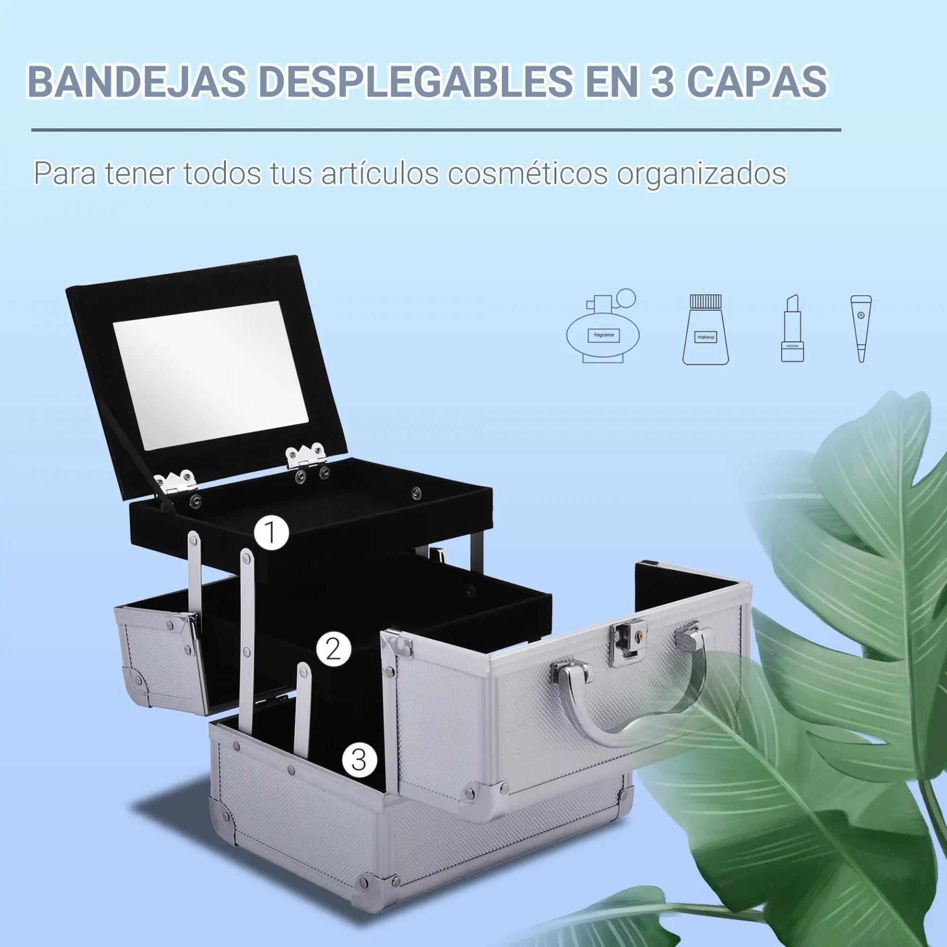 - BANDEJAS DE 3 NIVELES CON ESPEJO: El maletín de maquillaje está equipado con bandejas de 3 niveles muy funcionales para almacenar tus cosméticos. El espejo en la parte superior te permite maquillarte cuando quieras