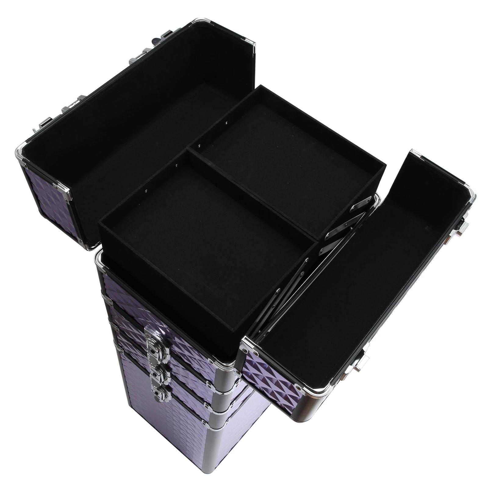 Maletín de Maquillaje Profesional con Ruedas Universales Distintos Niveles Asa Extensible Maletín Maquillaje Trolley Aleación de Aluminio 33.5x23x76/95.5 cm Violeta