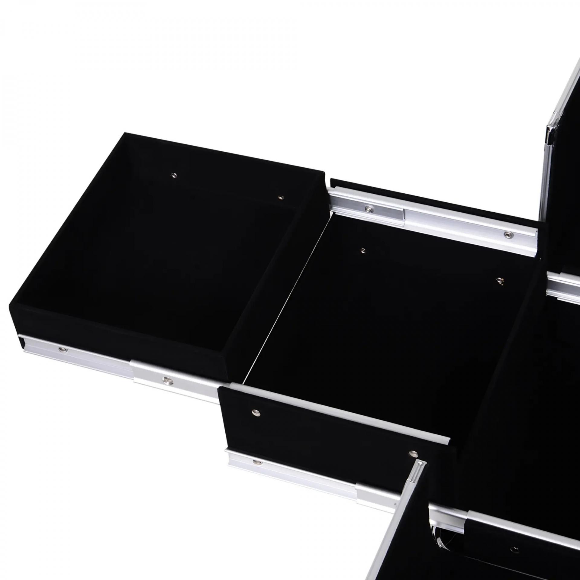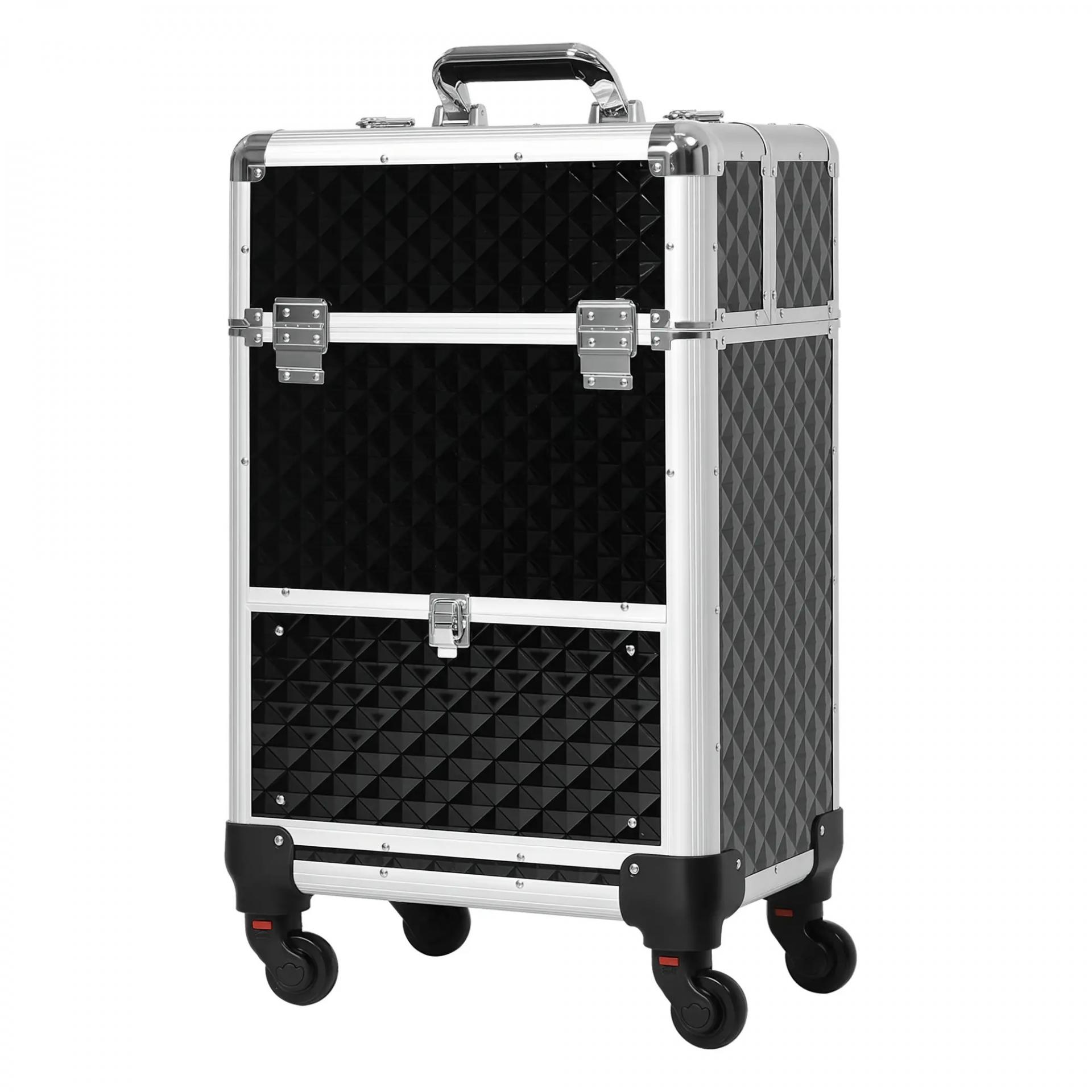 Maletín de Maquillaje Profesional con Cajón Maleta de Maquillaje con Ruedas para Viaje Trabajo 34x25x62 cm Negro