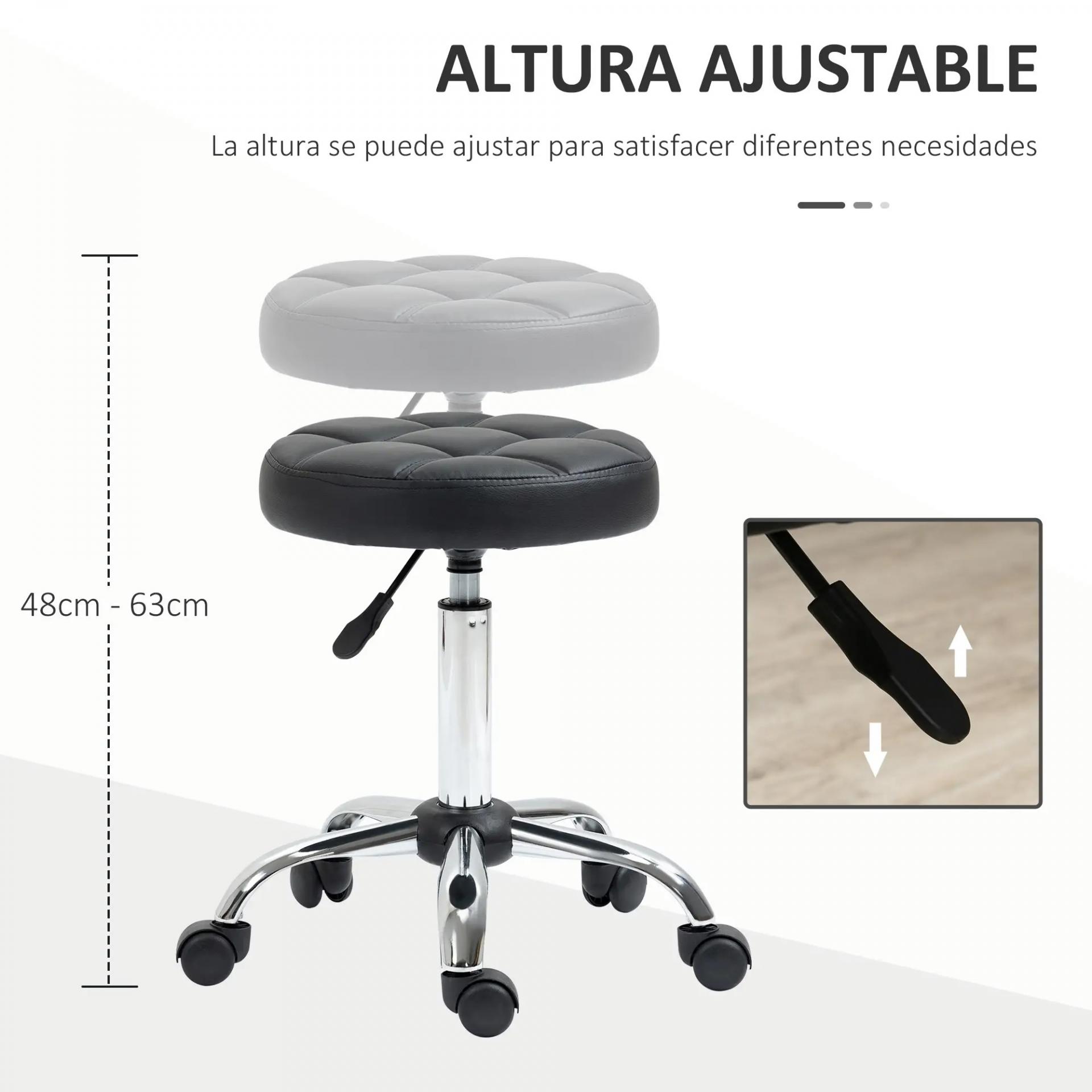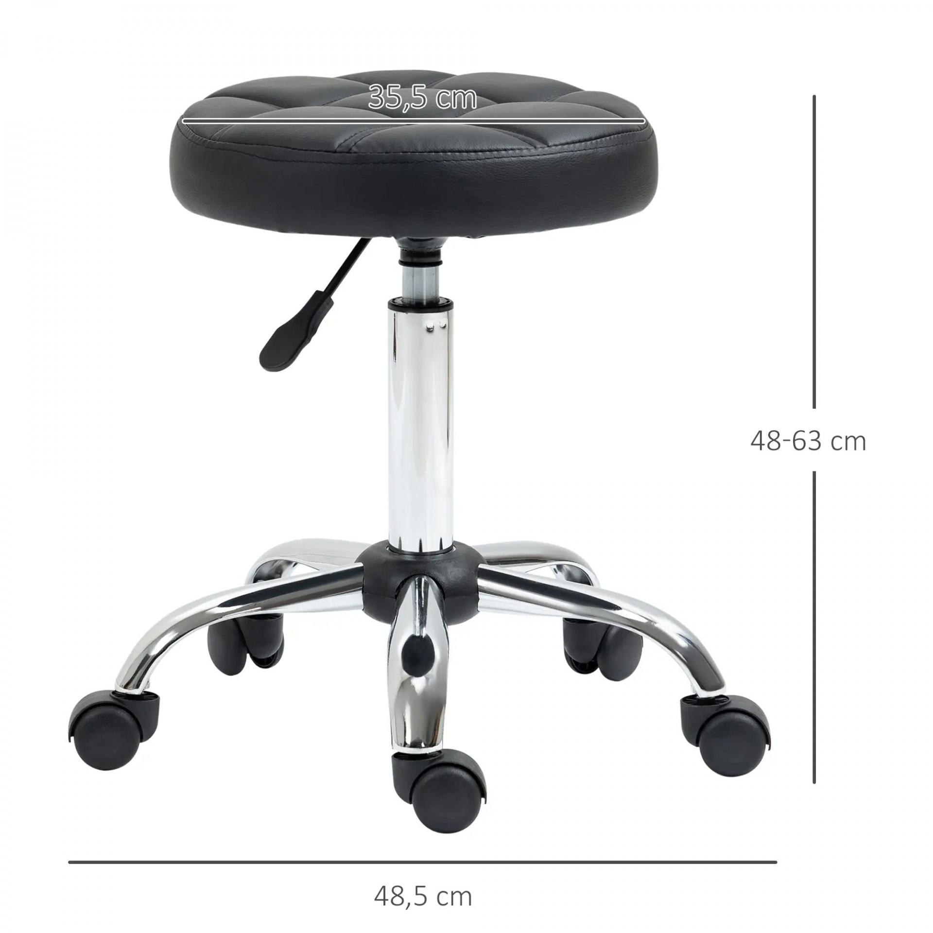 Taburete Giratorio con Ruedas Regulable en Altura de 48-63 cm Taburete de Trabajo Tapizado en Cuero PU para Peluquería Cosmética Dentista Diámetro Ø35,5 cm Negro