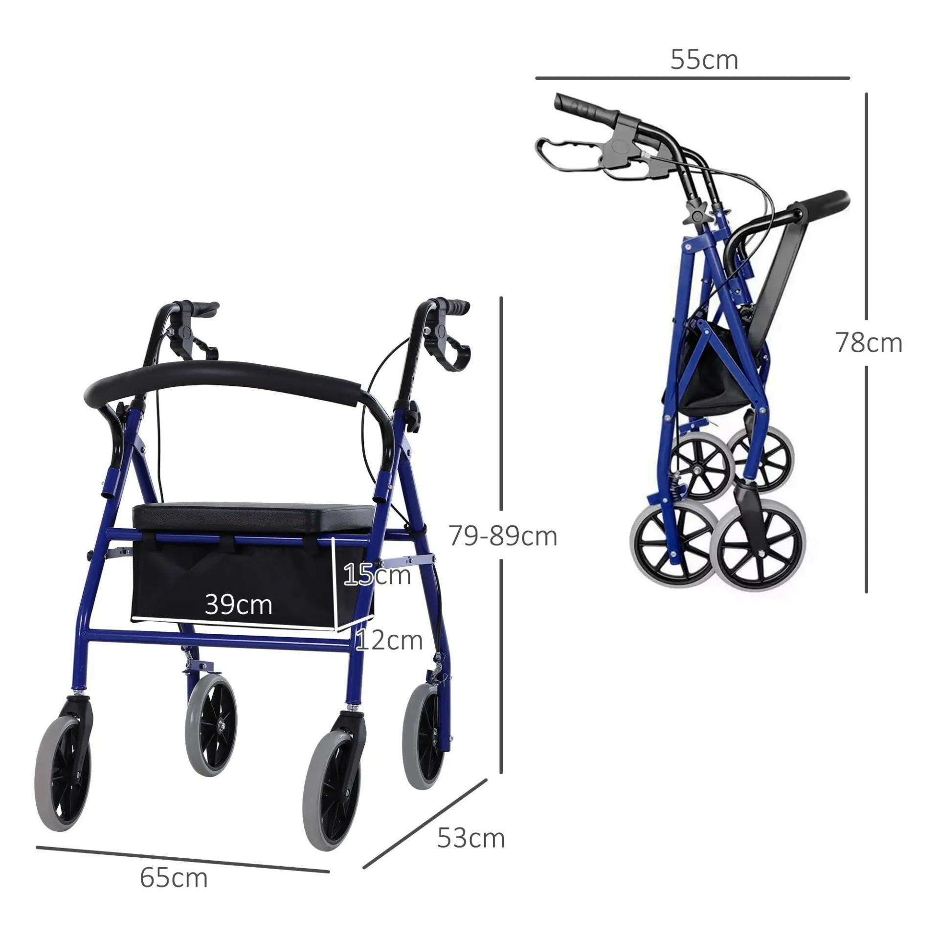 Andador para Adultos Plegable Con Almacenaje Asiento y Frenos 65x53x79-89 cm Azul y Negro