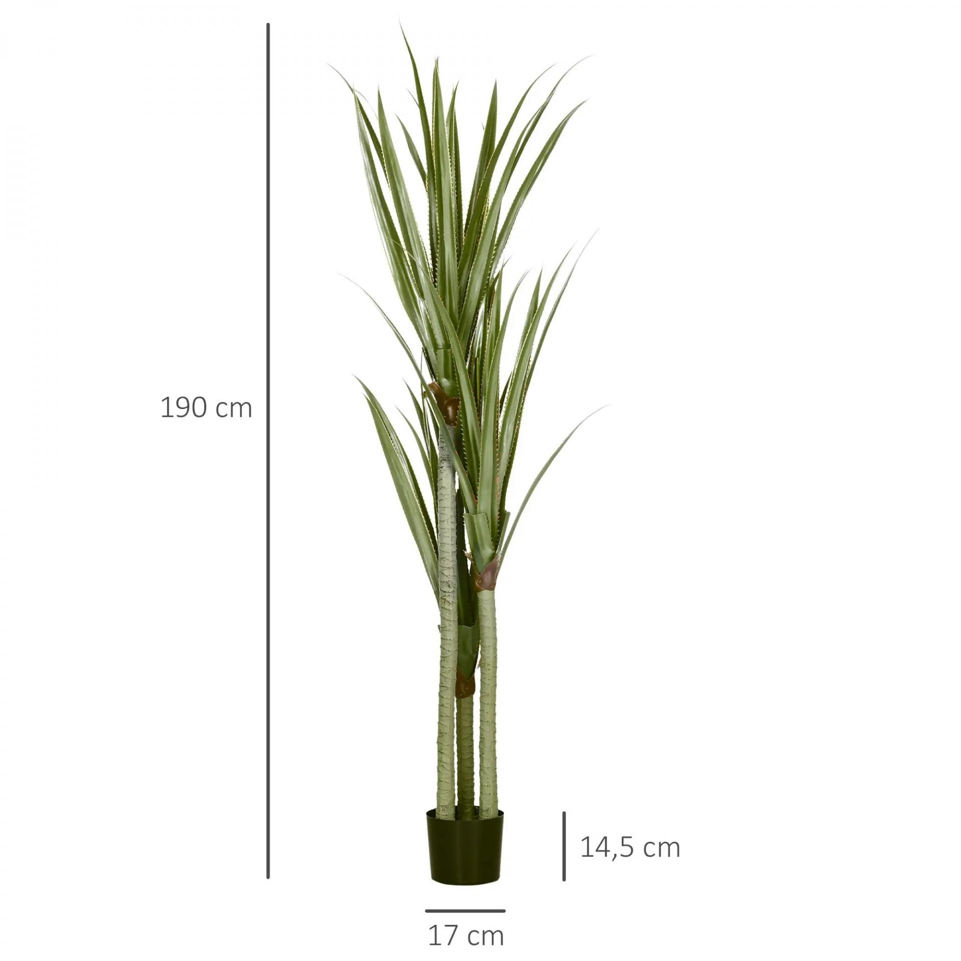 Yuca Artificial 190cm Planta Artificial con 39 Hojas Decoración para Hogar Salón Oficina Jardín Ø17x190 cm Verde