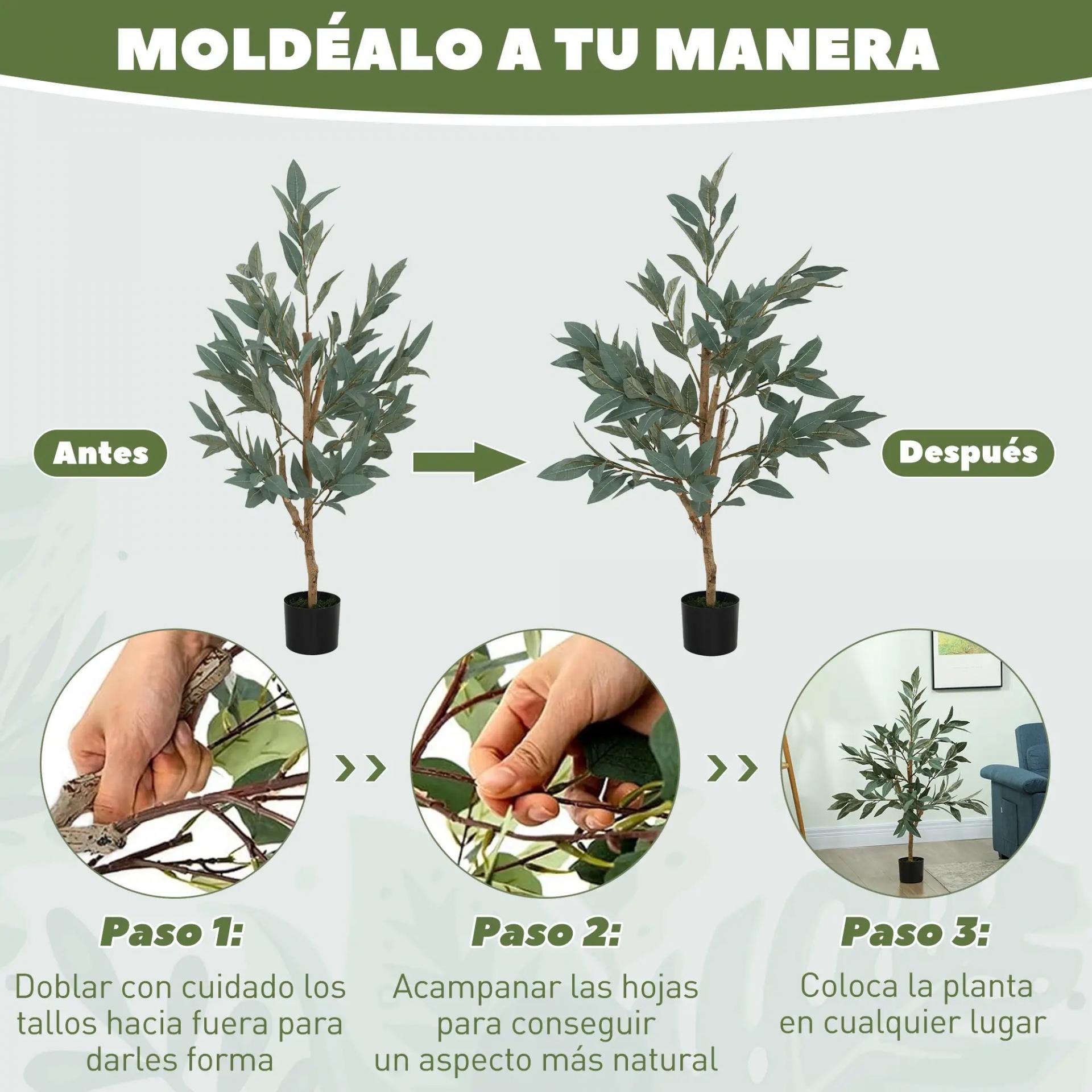 - APARIENCIA REALISTA: Añade un toque de elegancia a tu espacio con esta planta artificial de laurel, cuya coloración y textura imitan perfectamente a una planta natural, creando un efecto decorativo muy realista