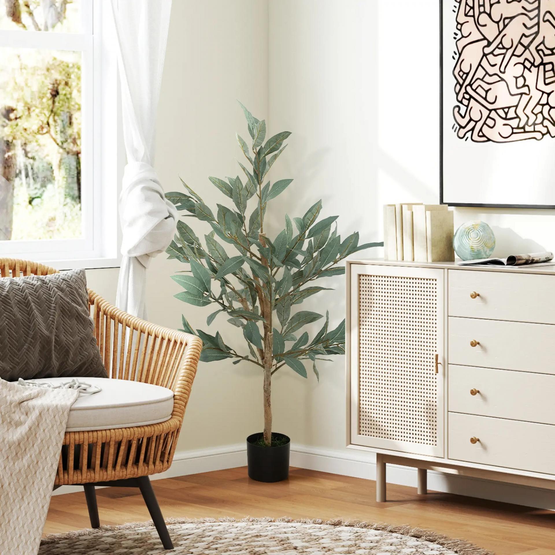 Árbol Artificial de Laurel 120 cm Decoración para Hogar Oficina Balcón Dormitorio Verde