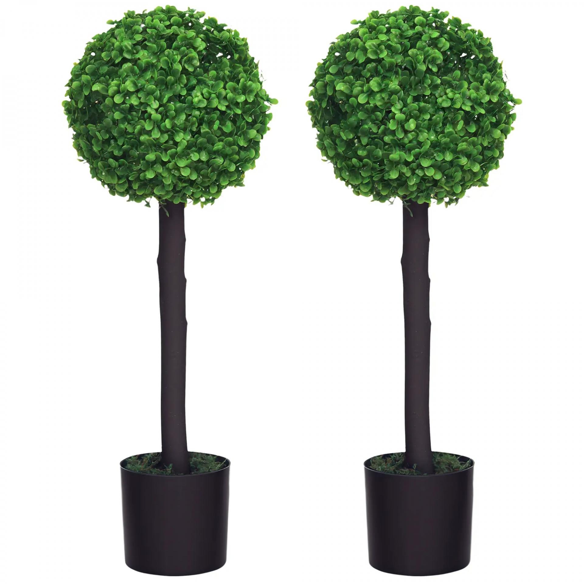 Set de 2 Arbustos Artificiales Decorativos 60cm Boj Sintético para Decoración Interior y Exterior Ø20x60 cm Verde